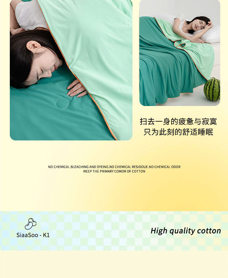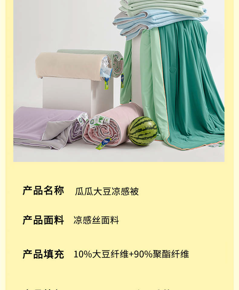 【A类瓜瓜大豆夏凉被】凉感丝冰淇淋夏凉被凉感瓜瓜夏被空调被可机洗夏天薄被子,牢牢固定内芯,不易滑动。ry