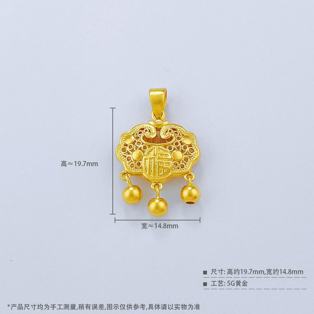 【限时7.5折】【定价黄金】足金999 (足金999字印)5G黄金古法工艺双面镂空铃铛如意福字锁包吊坠(5GGFDZ00001)(预售产品下单后不退款不退货不换货不补差价)