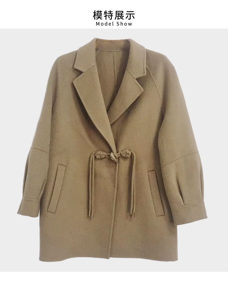 VIVIAN LIU薇薇安刘A2559303秋女装新款中长款牛角扣插肩羊毛大衣