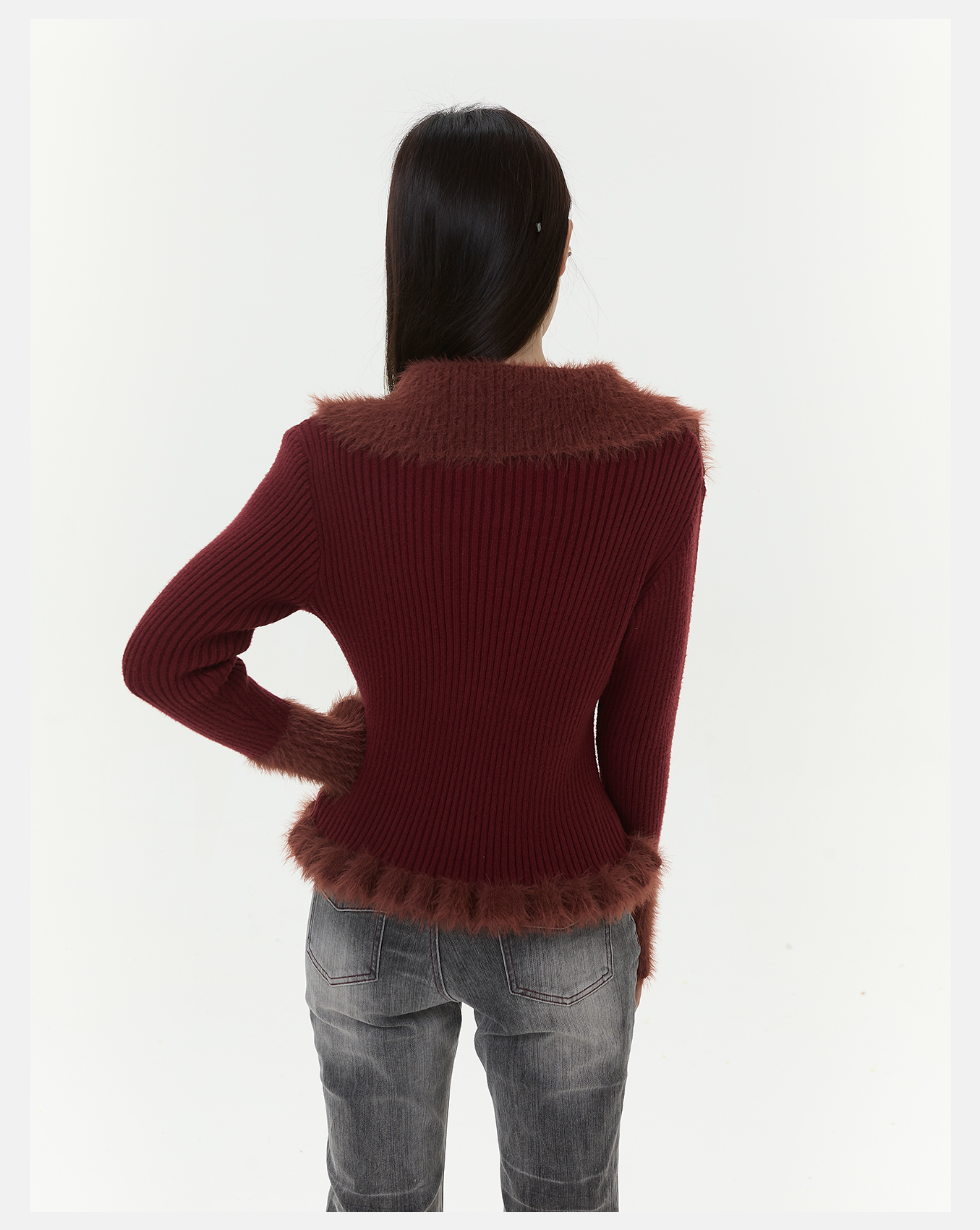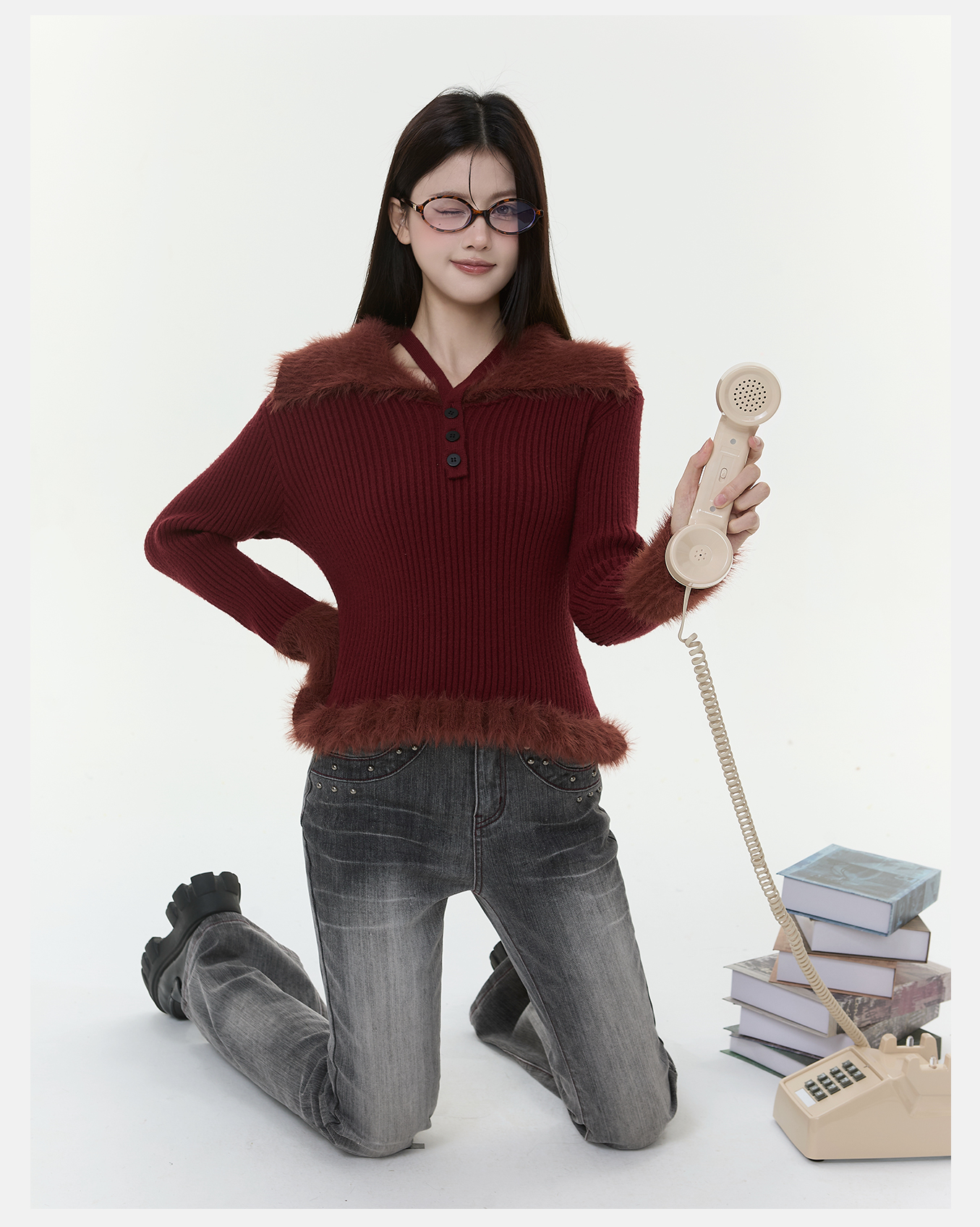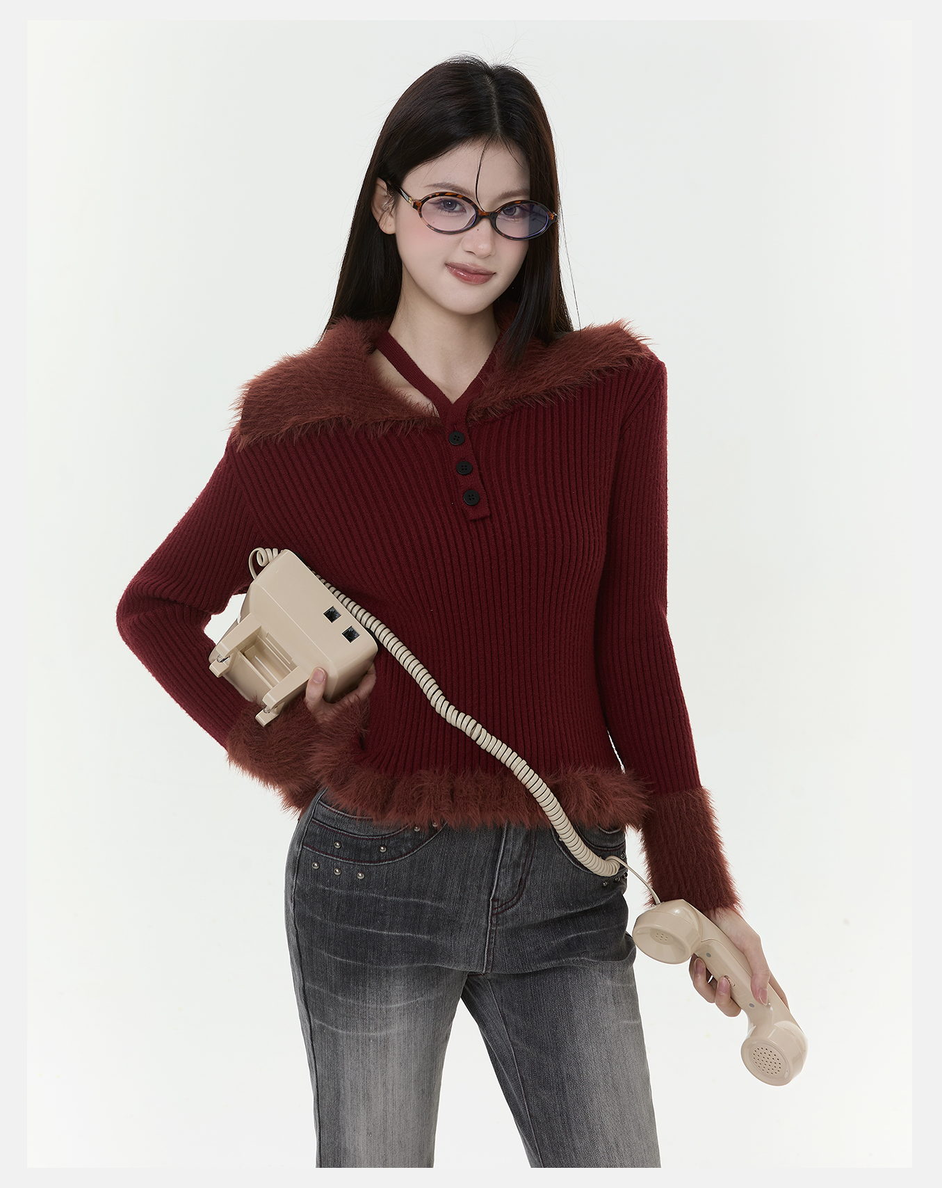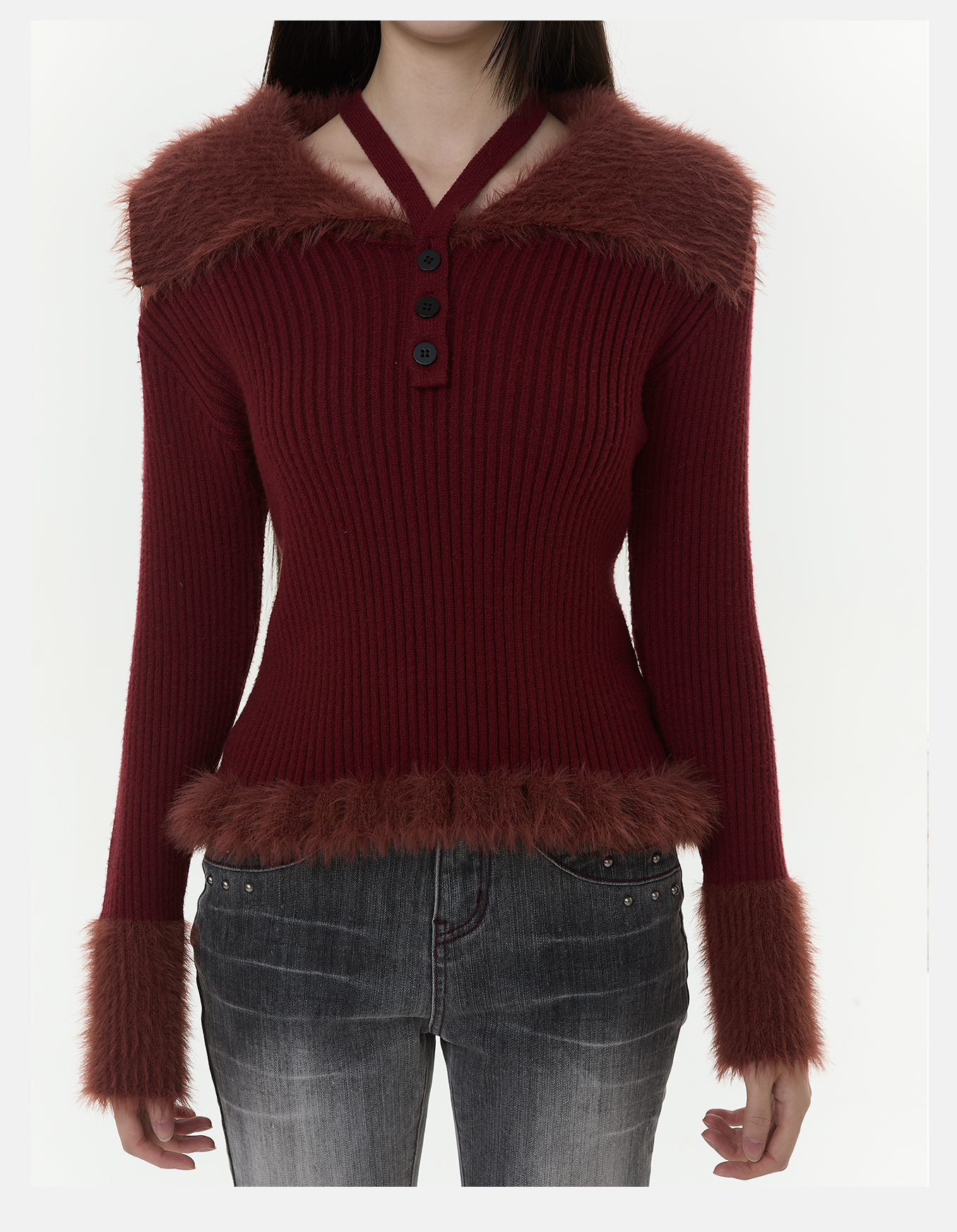 P&X设计师女装2025冬季套头法式时尚修身短款毛衣 825418189 红色