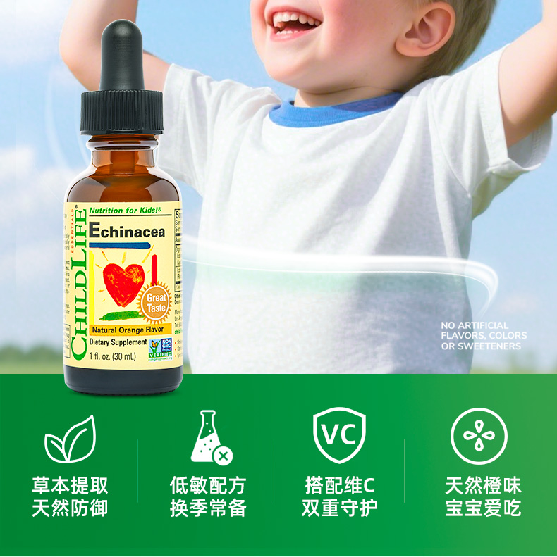 【品牌直供】童年时光ChildLife 紫锥菊滴剂 30ml/瓶★