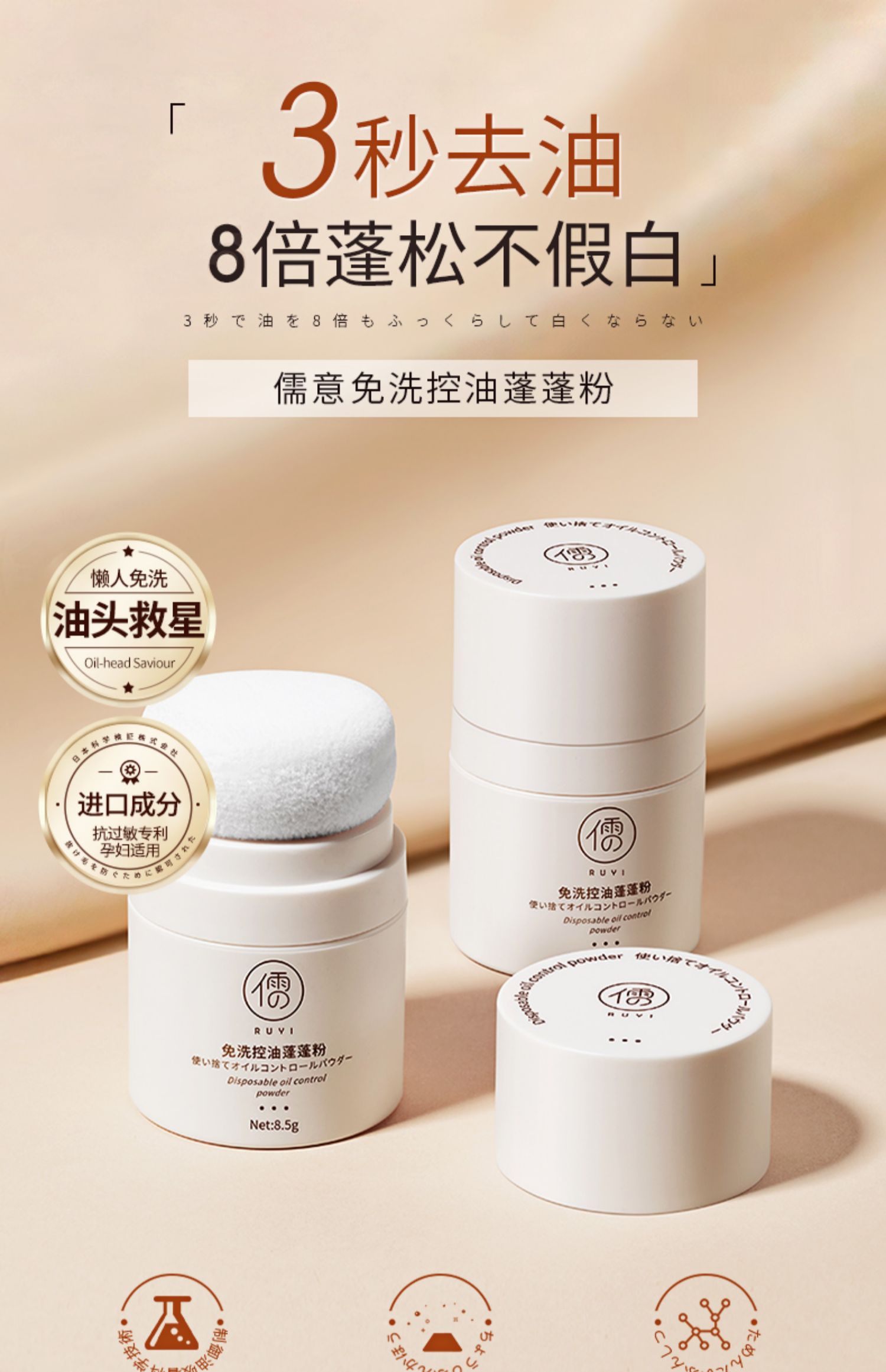 儒意免洗控油蓬蓬粉8.5g 头发蓬松粉 油头油腻神器 免洗喷雾 刘海控油去油干发粉新男女 | 儒意官方商城