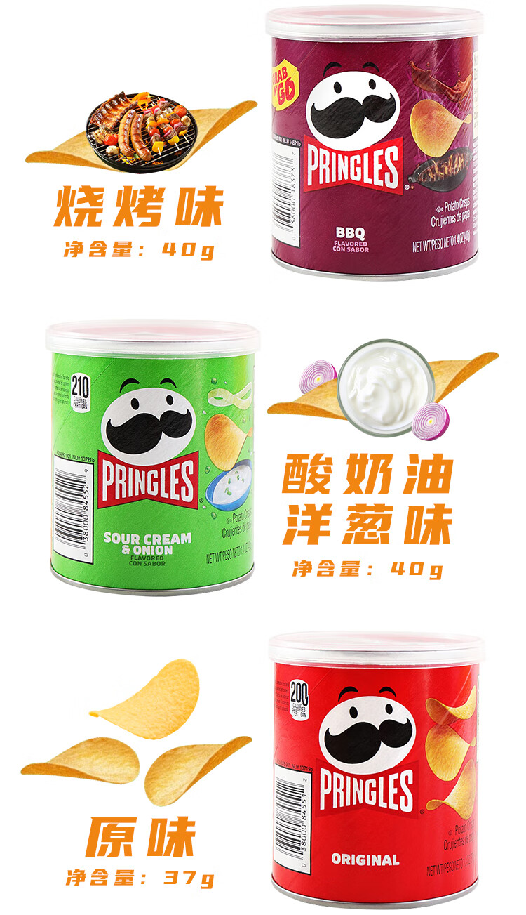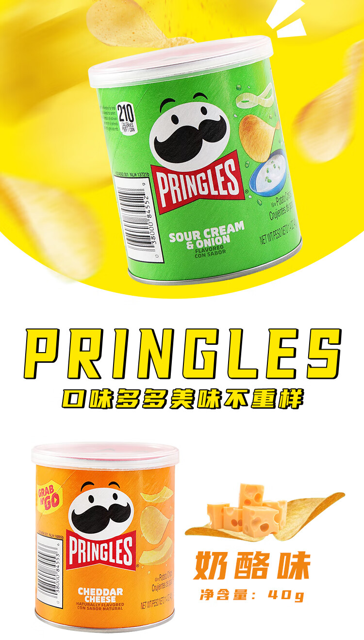 Pringles薯片小罐装系列 酸奶洋葱味/原味/烧烤味/奶酪味 咸度适中 美味酥香 056497/056498/054356/054358