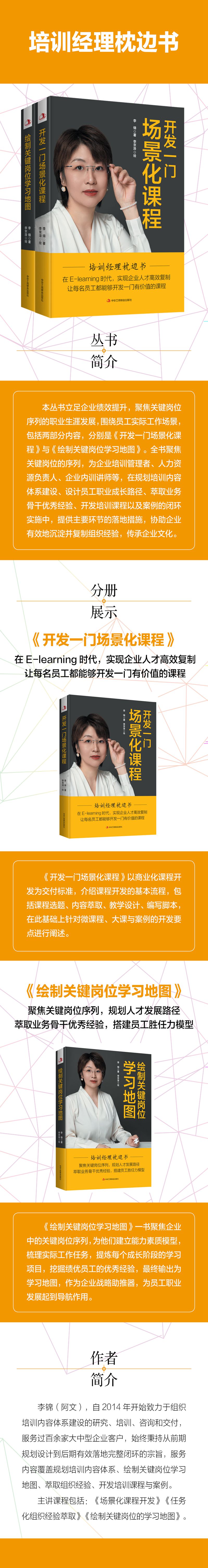 立足企业绩效提升,聚焦关键岗位序列的职业生涯发展,围绕员工实际工作场景,本丛书包括两册内容,分别是《开发一门场景化课程》与《绘制关键岗位学习地图》。聚焦关键岗位的序列为企业培训管理者、人力资源负责人、企业内训讲师等,在规划培训内容体系建设、设计员工职业成长路径、萃取业务骨干优秀经验、开发培训课程以及案例的闭环实施中,提供主要环节的落地措施,协助企业有效地沉淀并复制组织经验,传承企业文化。