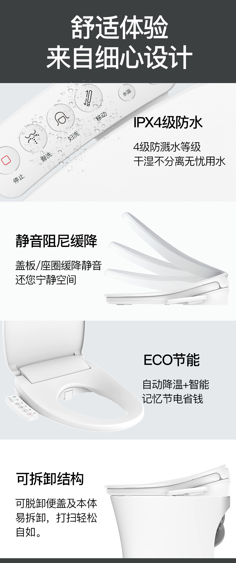 海尔(Haier)智能马桶盖即热式 双效除臭 抗菌 通用型电动坐便器 【基础款X-M02】即热+节能