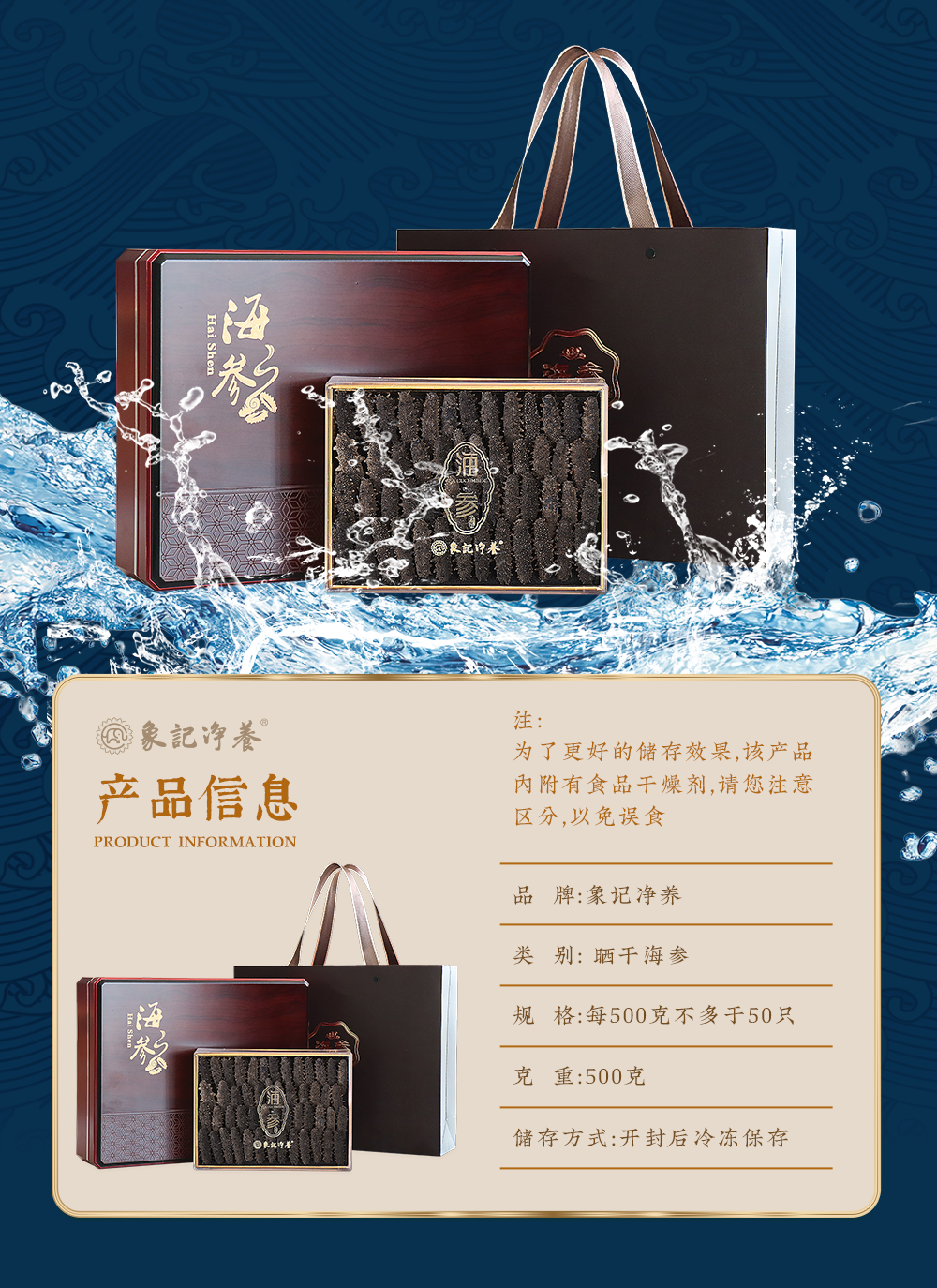 【象记养生】淡干海参500克-礼盒装60头500克(30只左右大海参)