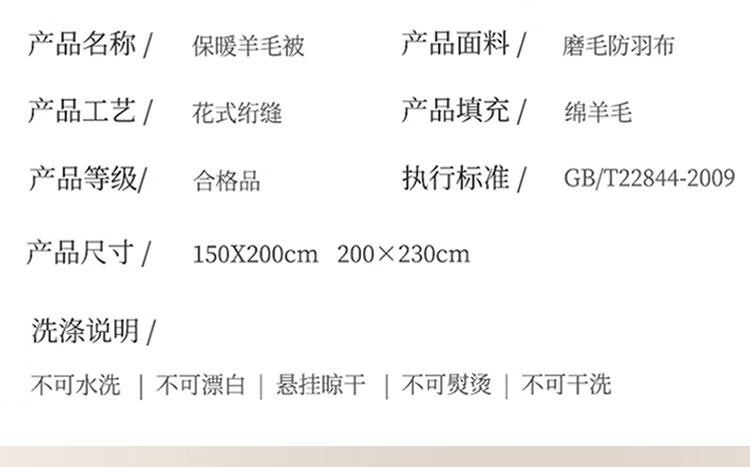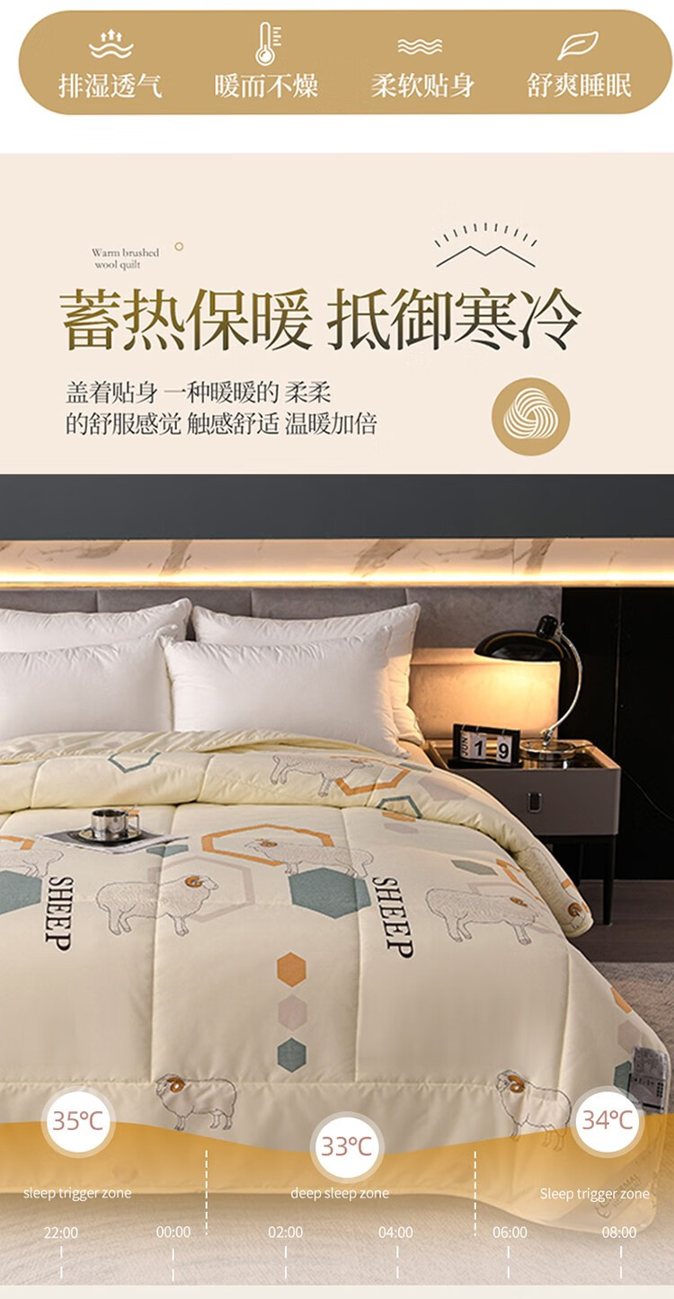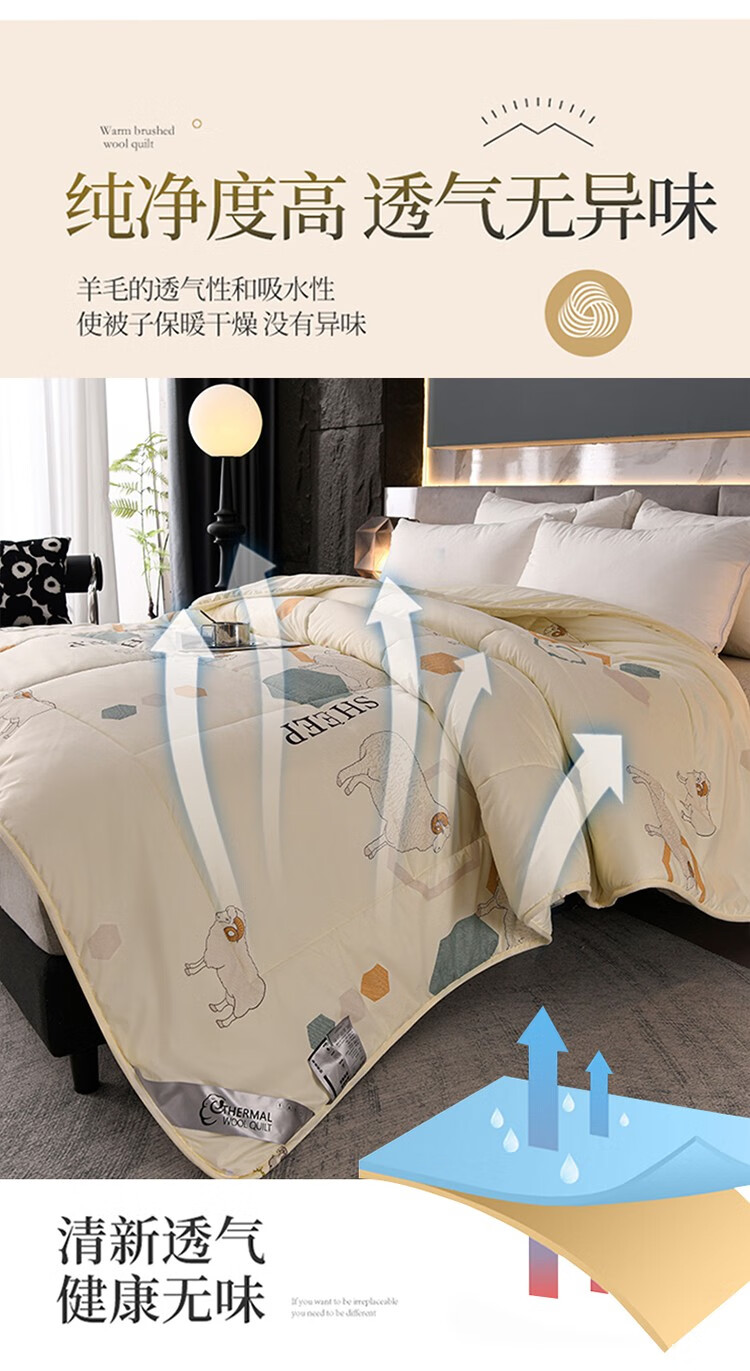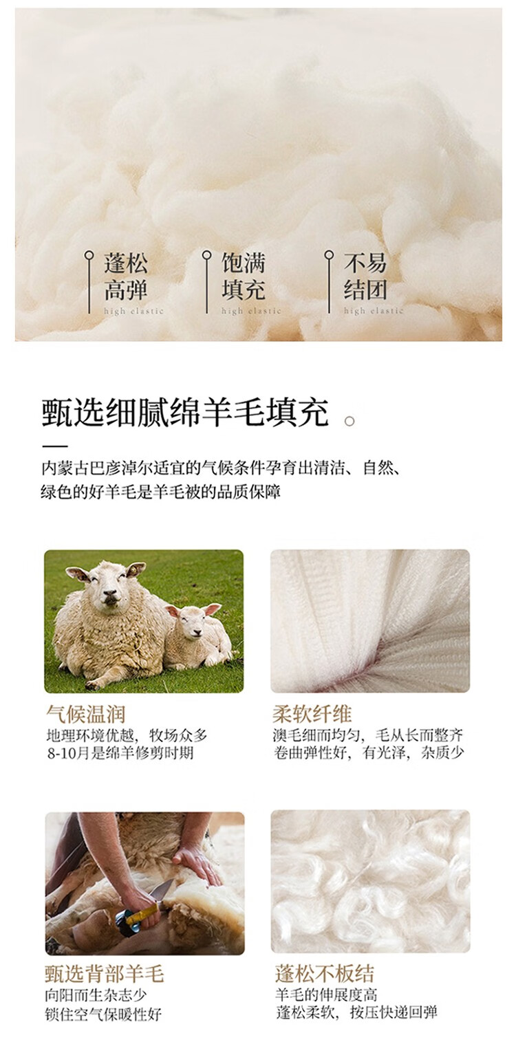 南方生活豪华磨毛抗菌防螨绵羊毛被