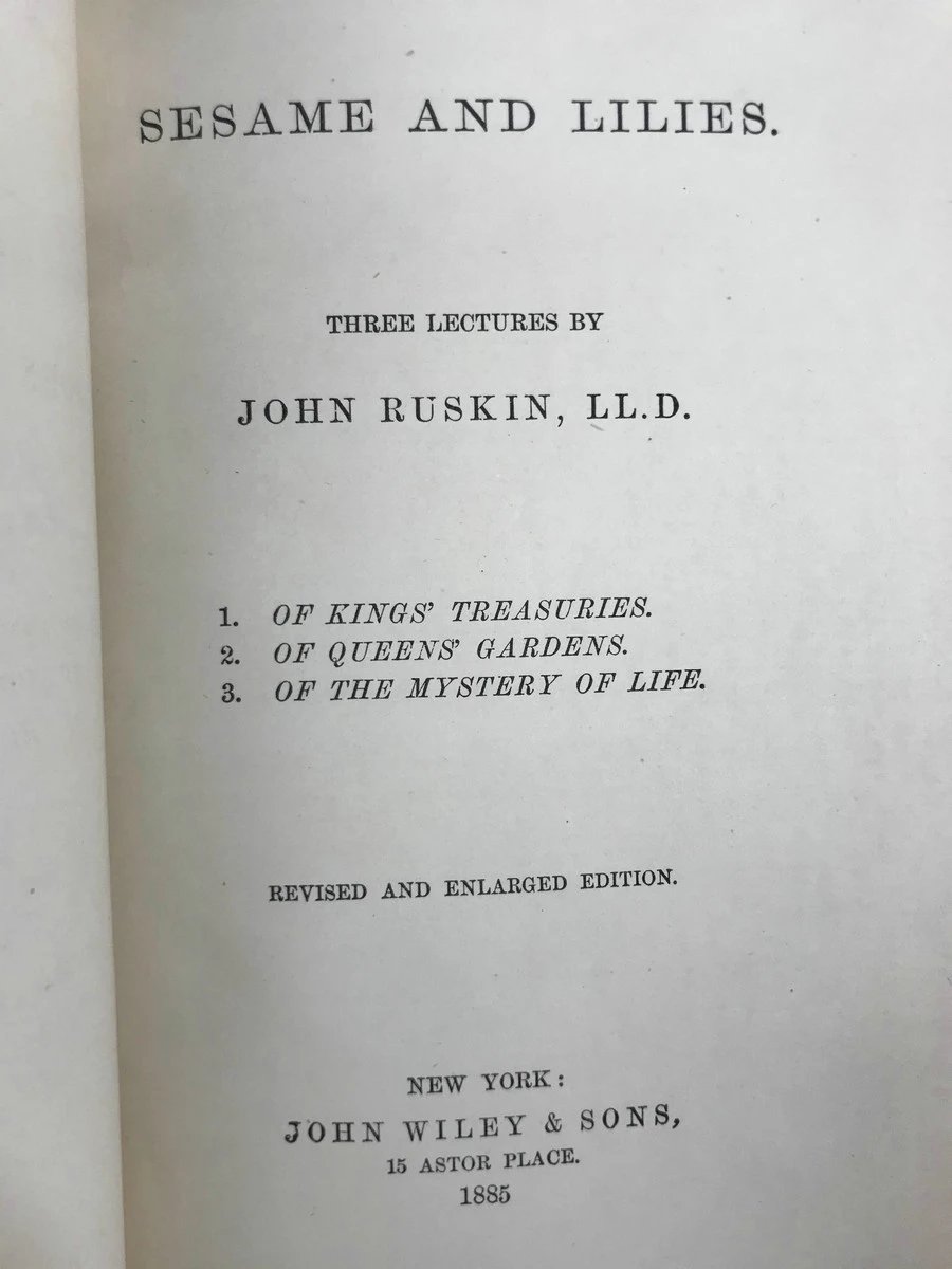 1885年 罗斯金《芝麻与百合/尘埃的伦理/野橄榄王冠空中女王》 漆布精装32开