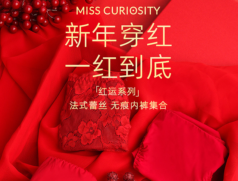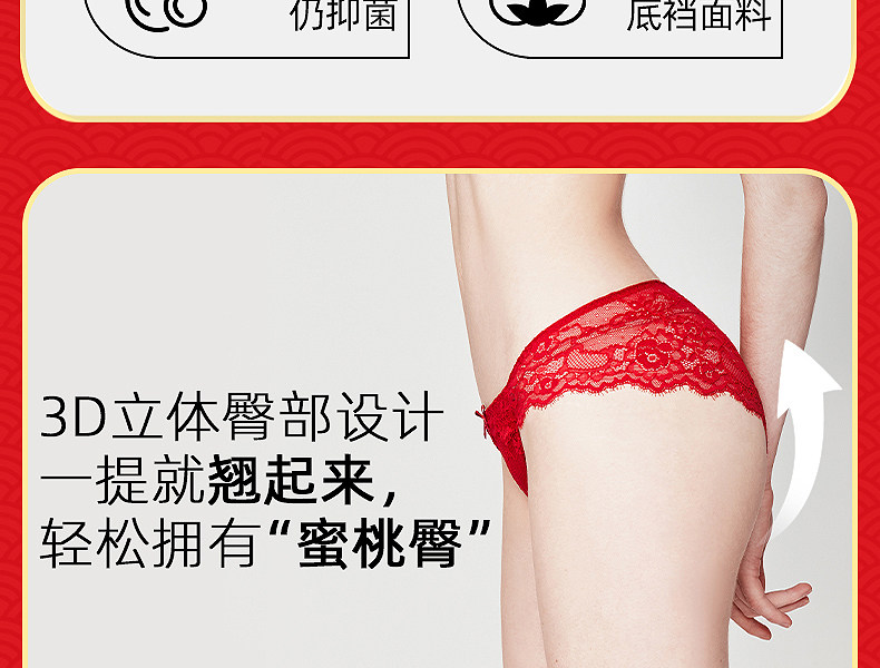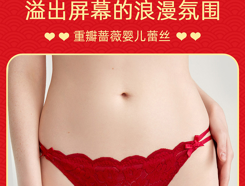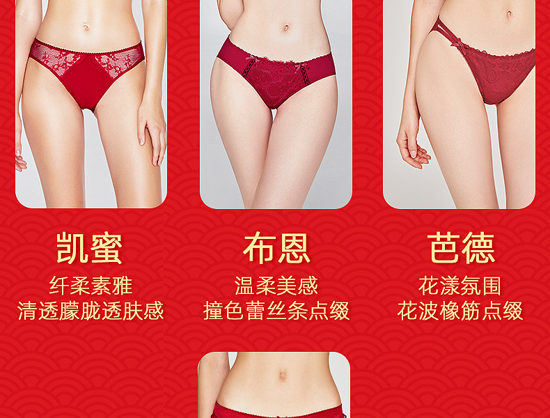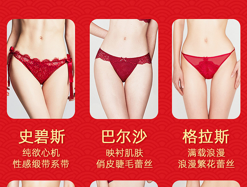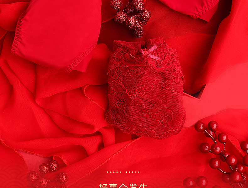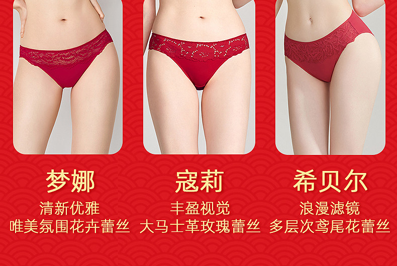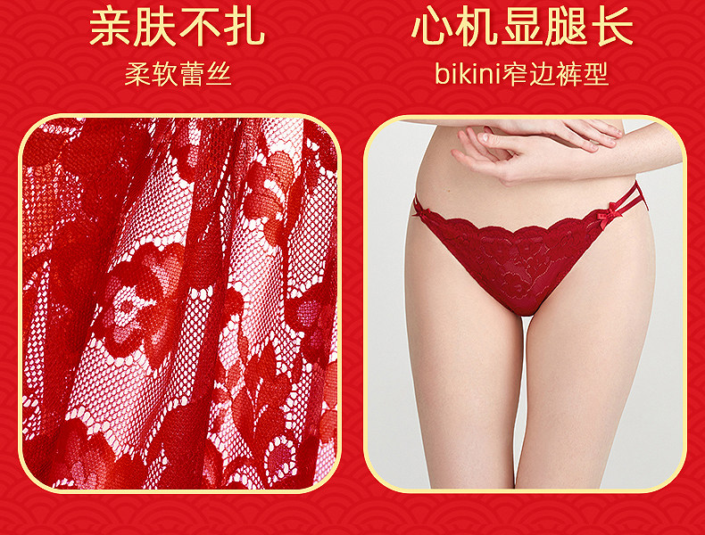 3条98元好奇蜜斯本命年三角红内裤女抗菌棉裆蕾丝性感薄无痕结婚-红运任选