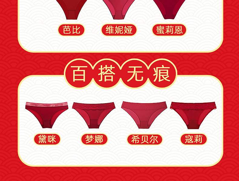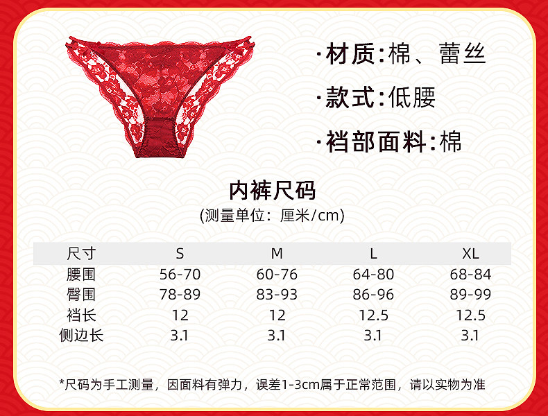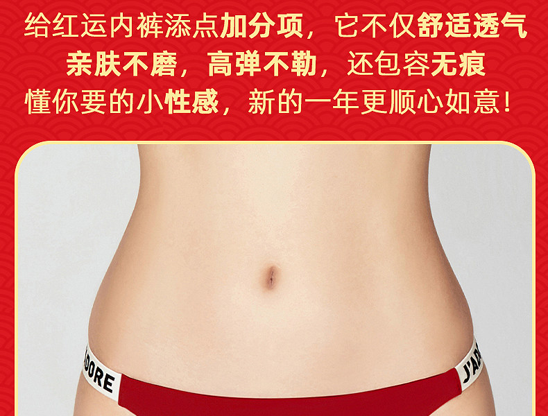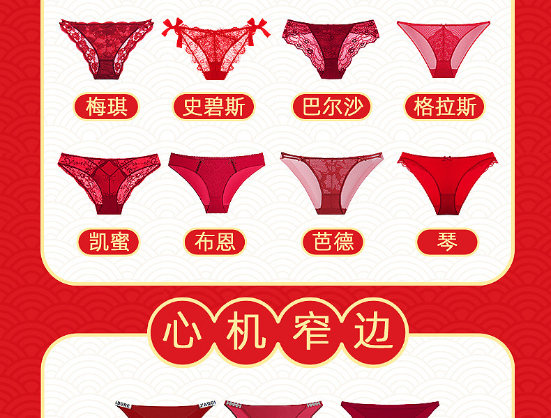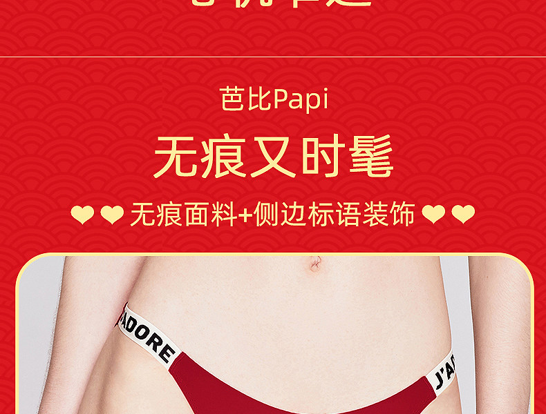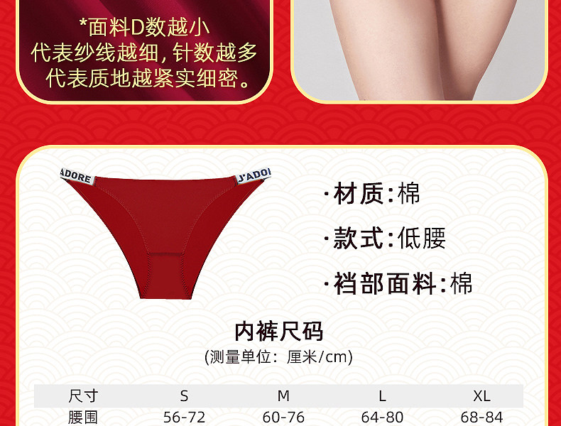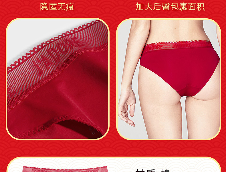 3条98元好奇蜜斯本命年三角红内裤女抗菌棉裆蕾丝性感薄无痕结婚-红运任选