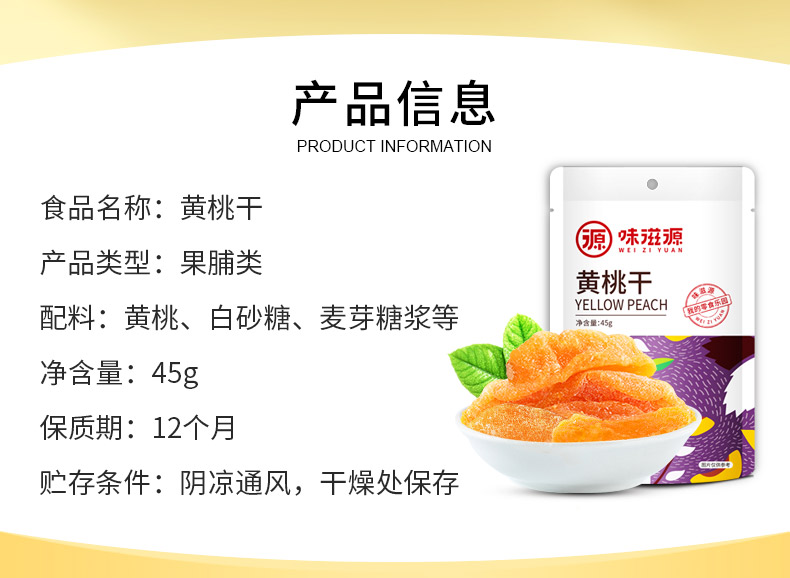 味滋源 黄桃干45g散袋装水果果脯水果干小包装休闲【分销】