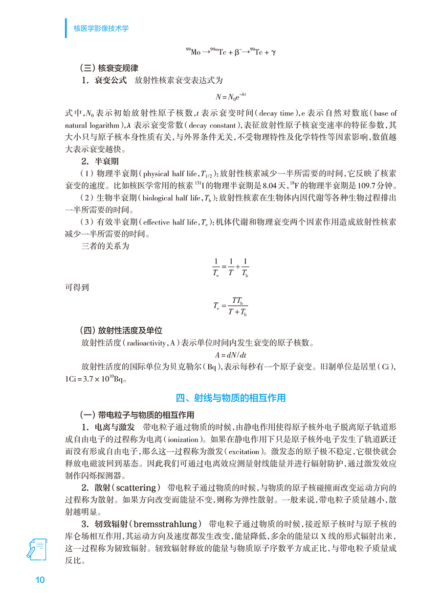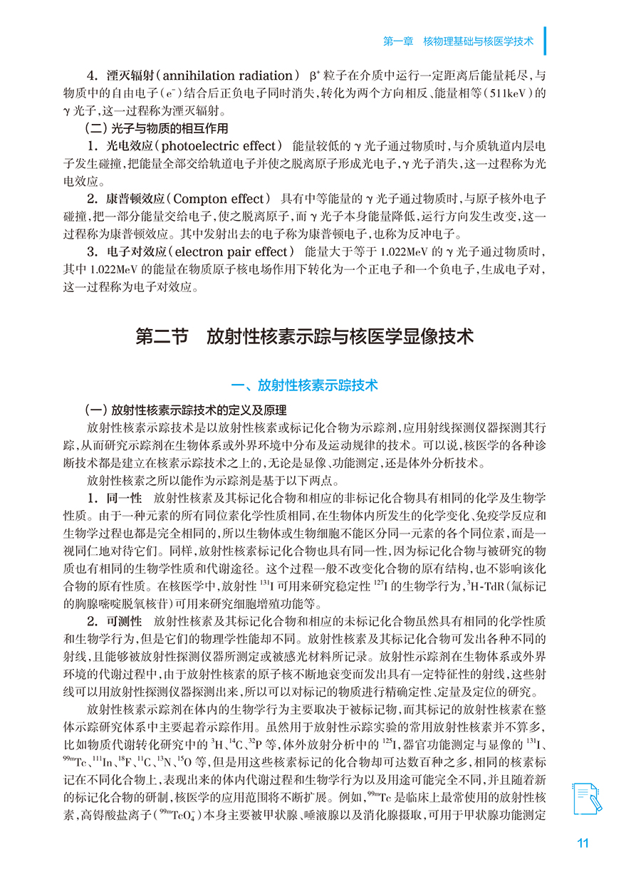 本教材为全国高等学校医学影像技术专业第二轮规划新增教材,旨在使医学影像技术专业的学生掌握核医学影像技术学相关知识和理论。主要内容上从核医学物理基础,核医学仪器,放射性药物,辐射生物效应与辐射防护, 放射性核素示踪技术与脏器显像,体外分析技术,核医学分子影像概论,分子影像与个体化医疗,核医学分子影像与转化医学,以及临床诊断技术,临床治疗技术来介绍。本教材将以融合教材形式展现核医学影像技术学相关内容。