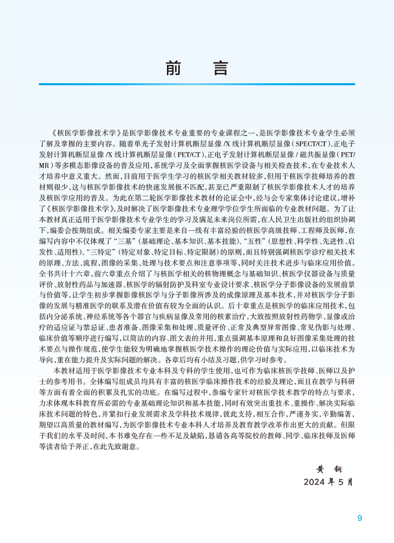 核医学影像技术学 十四五规划教材全国高等学校教材 黄钢 主编 供医学影像技术专业用 本套理论教材均配有电子教材 人民卫生出版社