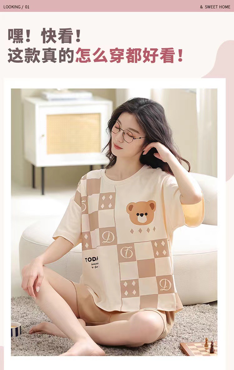 【健康亲肤面料❗轻松无束缚】睡衣女夏季新款套装学生甜美大码宽松短袖短裤可爱卡通外出网红家。rh