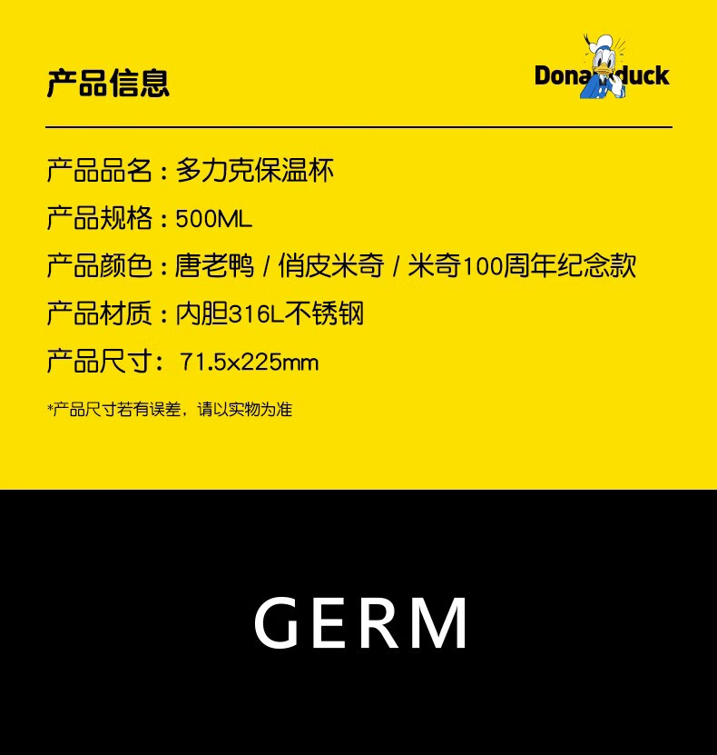 GERM/格沵 米奇系列多立克保温杯 500ml