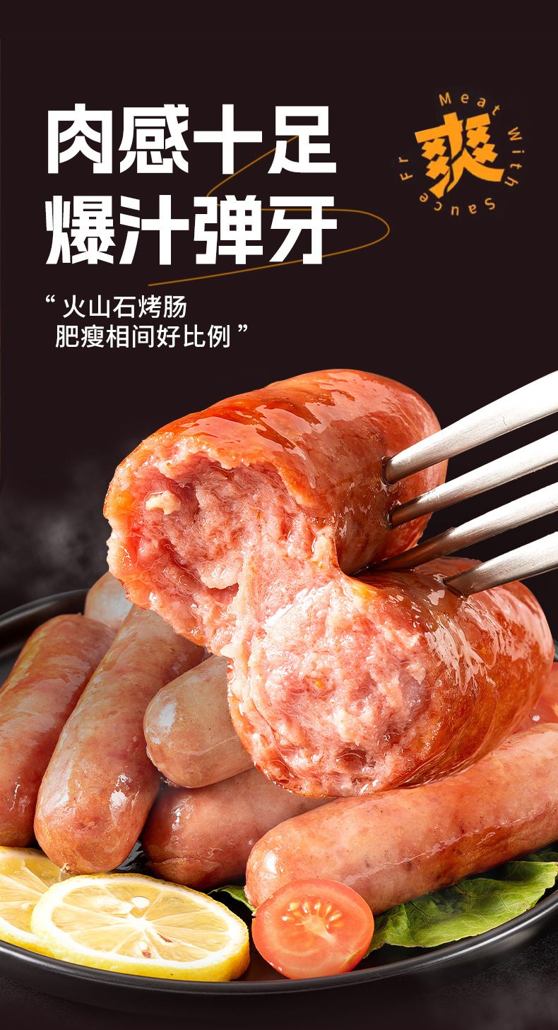 【脆皮爆汁❗️地道火山石烤肠】一口爆料,Q弹饱满,肉感十足,爆汁弹牙,久嚼无渣!脆皮肠肉肠风味脆皮热狗香肠家用早餐