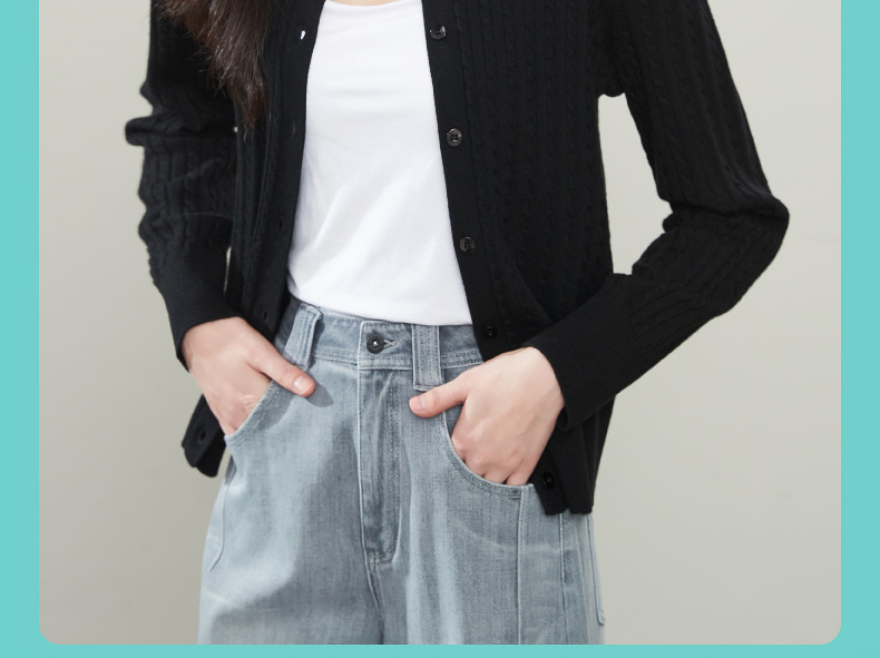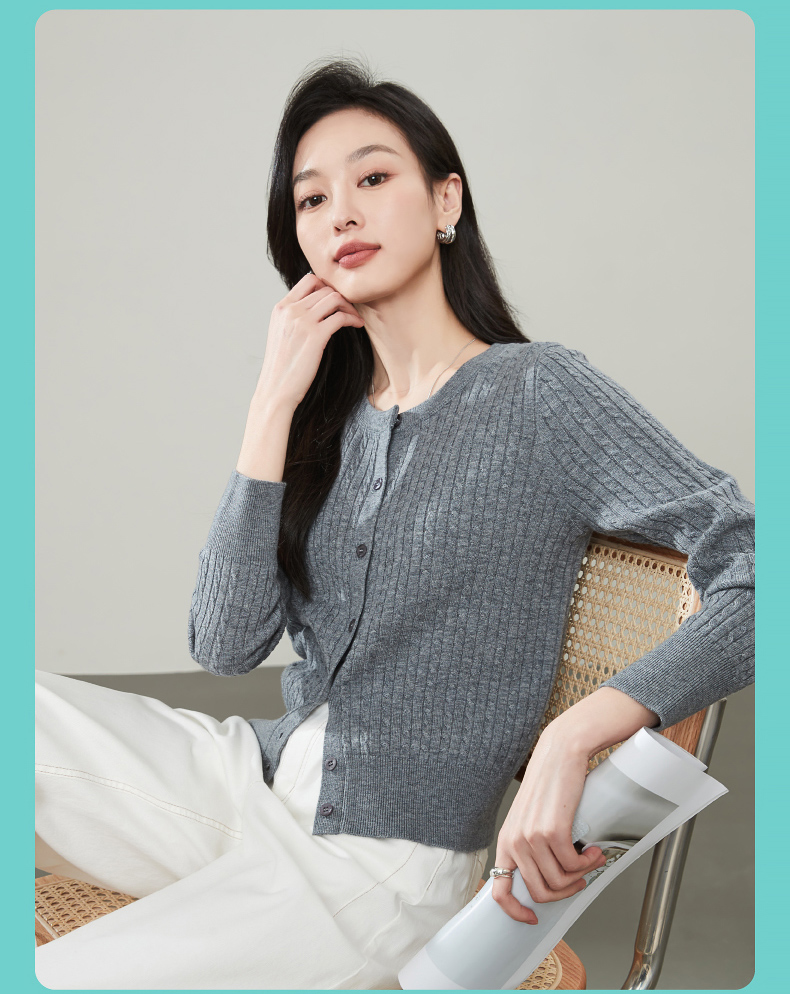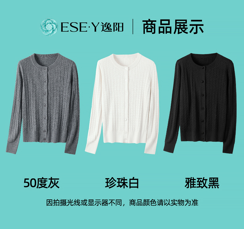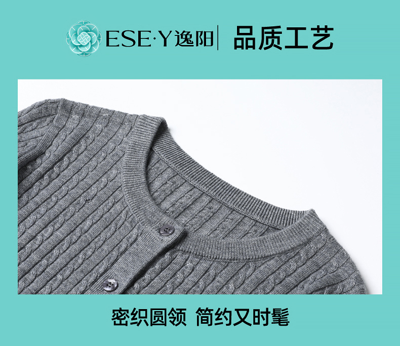 【春新品!静奢风-针织开衫】逸阳春季圆领绞花软糯叠穿羊毛开衫上衣5060