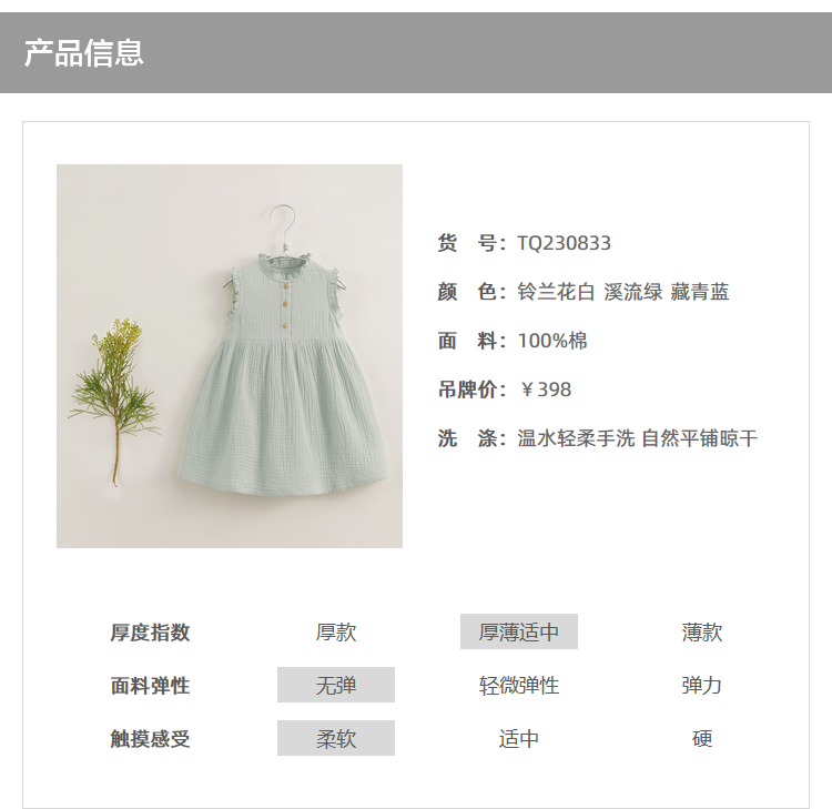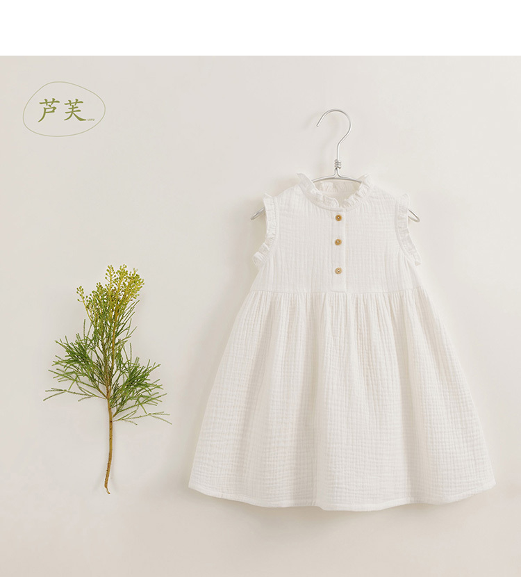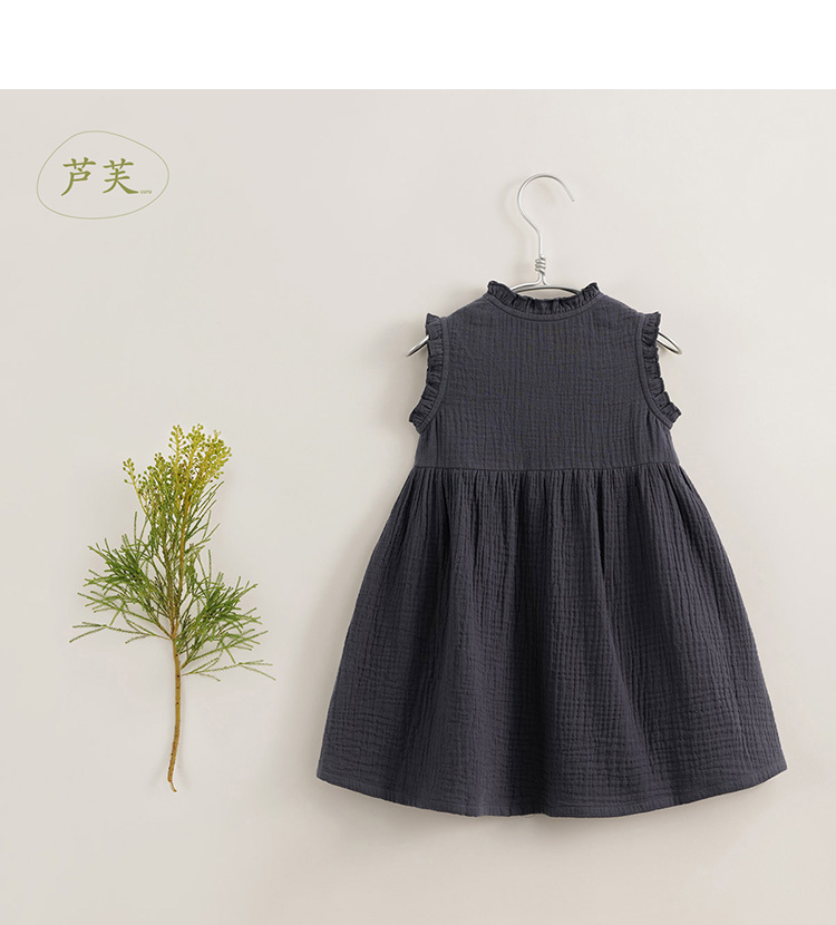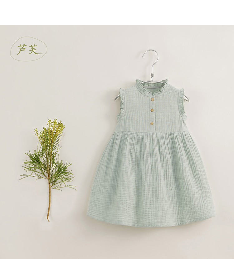 【马克珍妮 芦芙】夏装新款 女童泡泡纱木耳边连衣裙230833