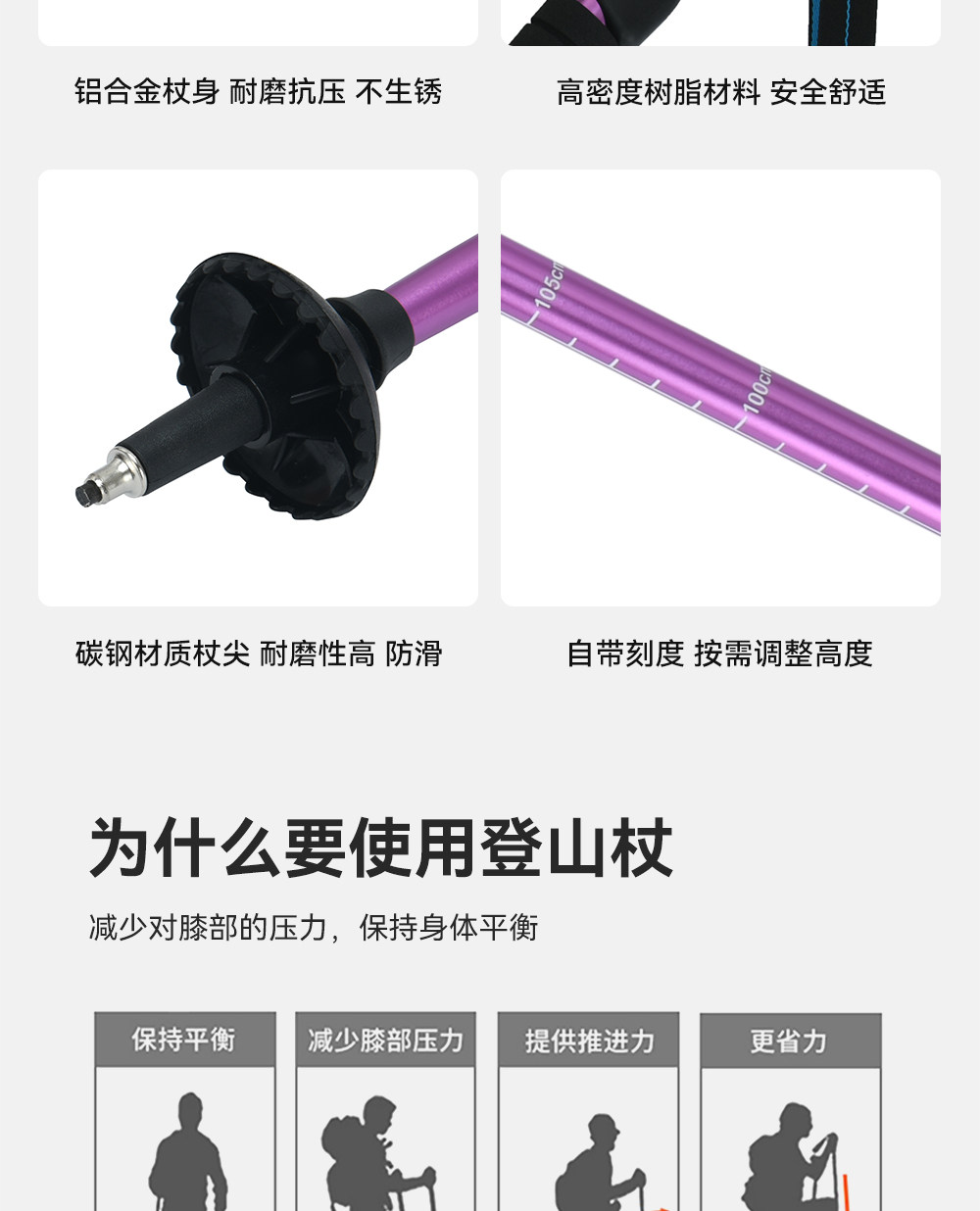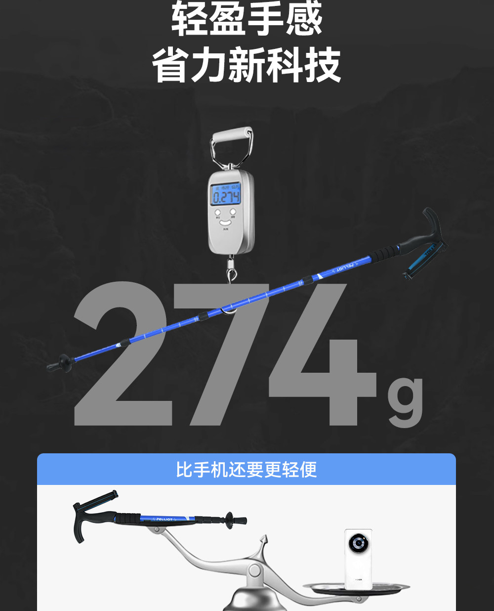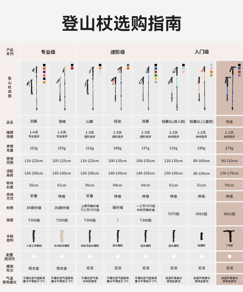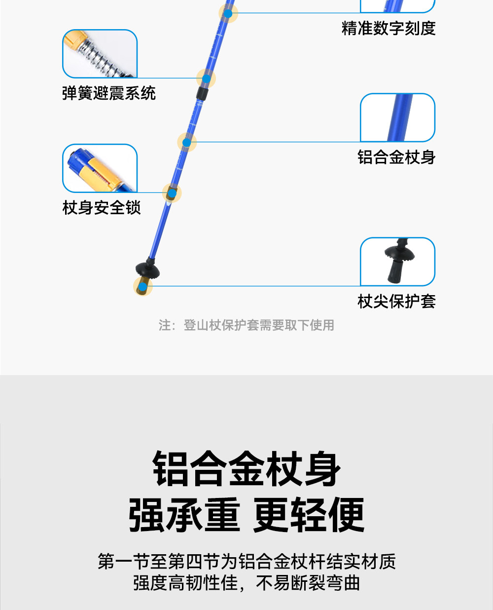 伯希和户外登山杖女铝合金伸缩手杖专业徒步装备轻便防滑拐杖男冬