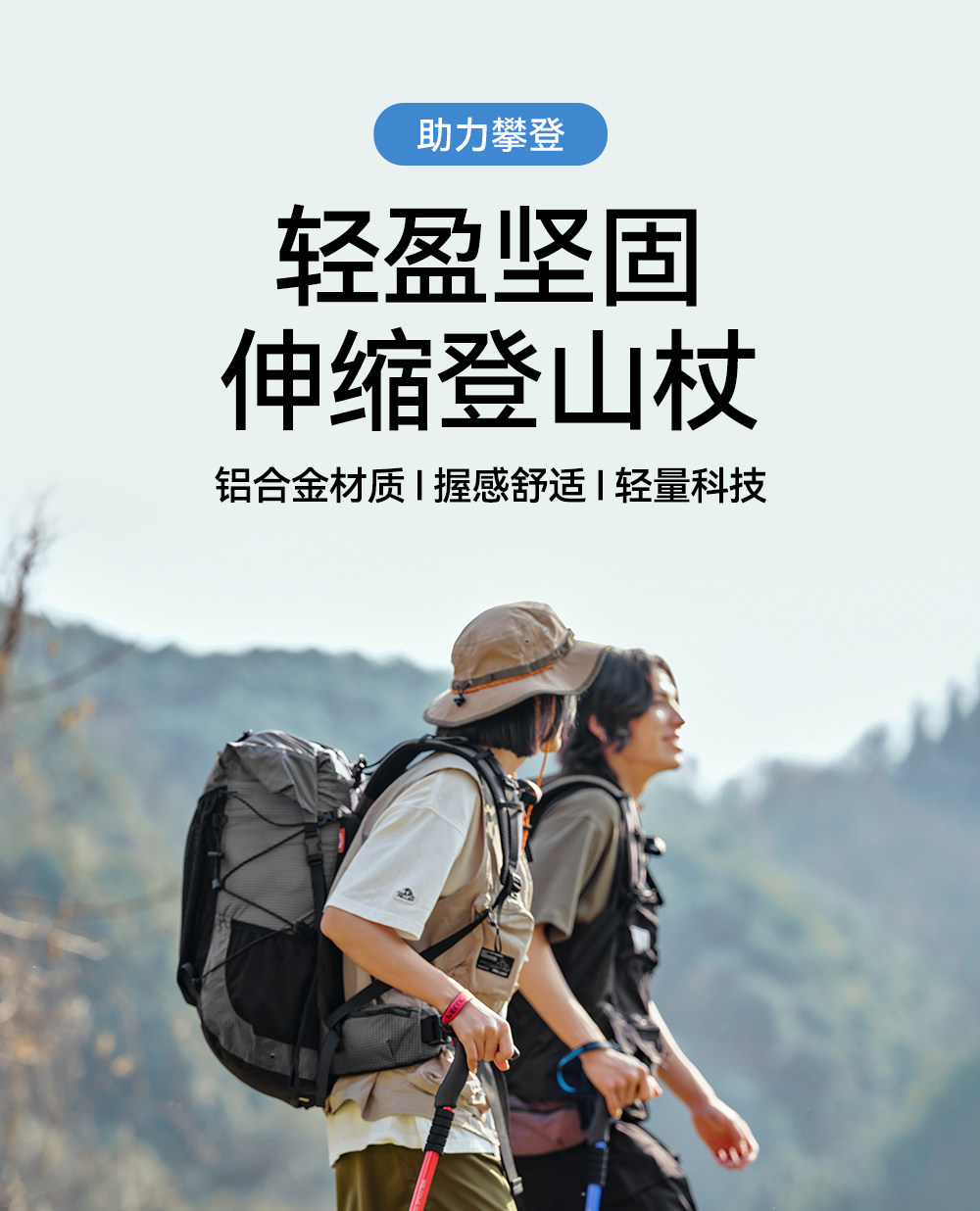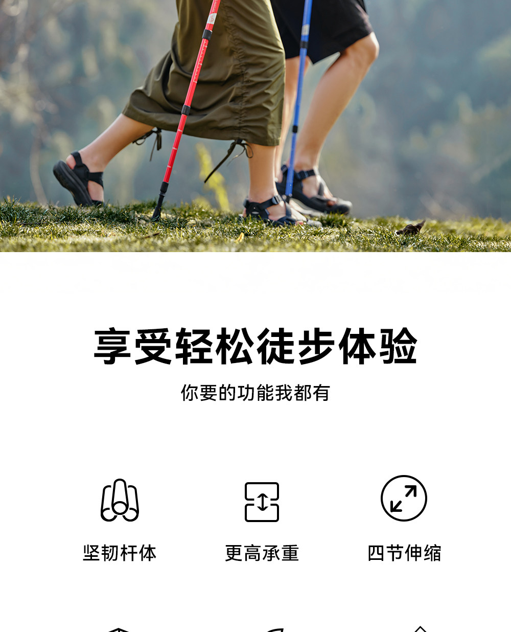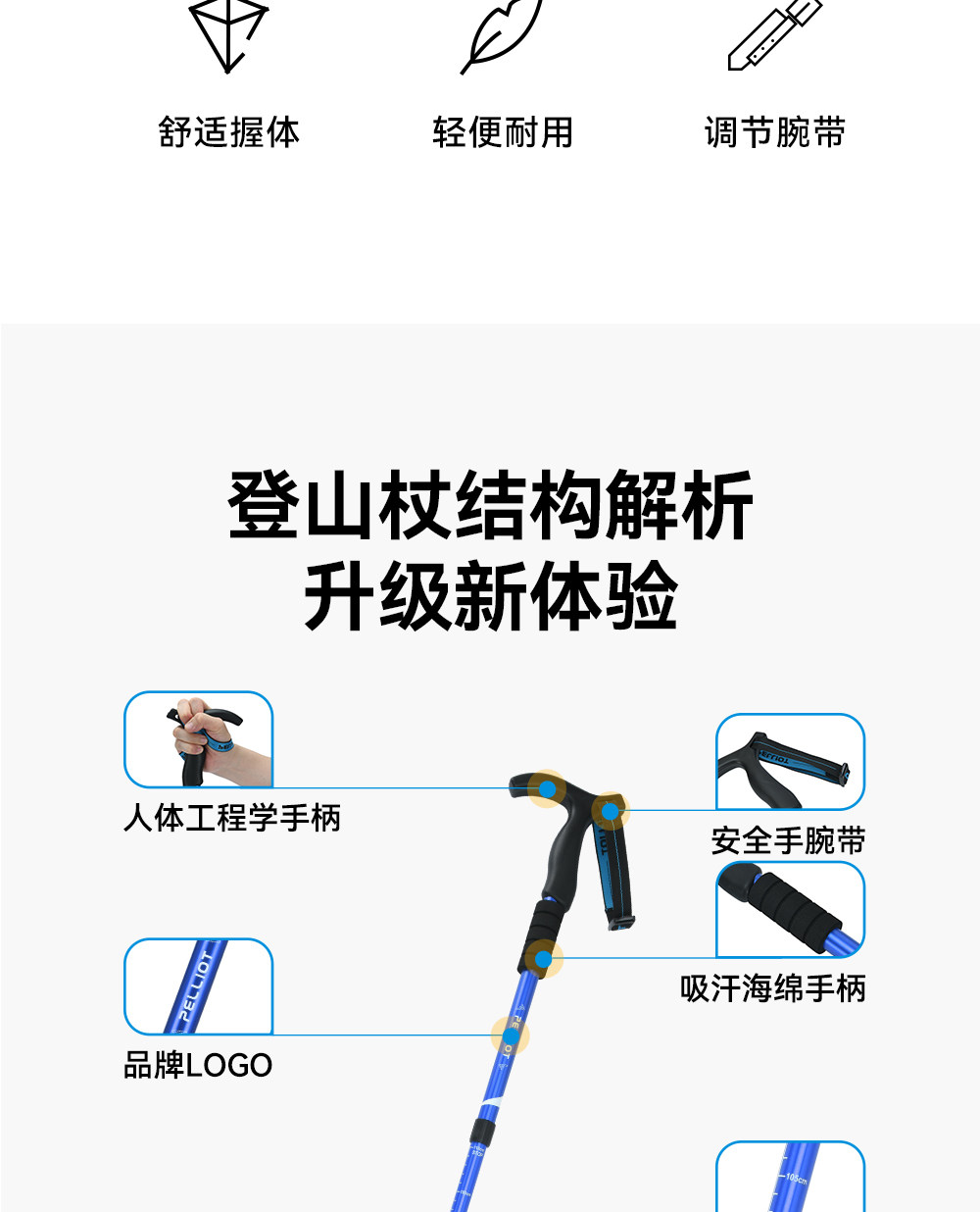 伯希和户外登山杖女铝合金伸缩手杖专业徒步装备轻便防滑拐杖男冬