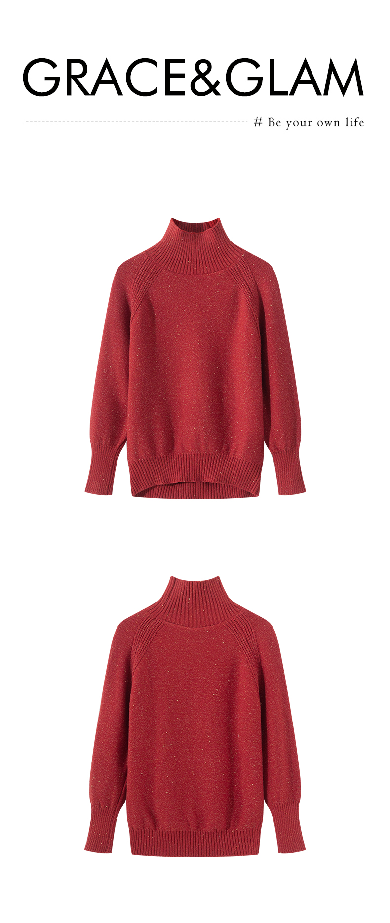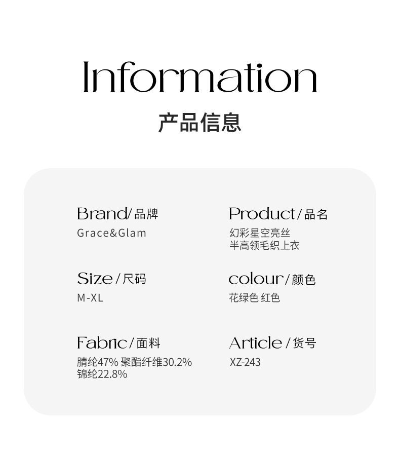 Grace&Glam 幻彩星空亮丝半高领毛织上衣