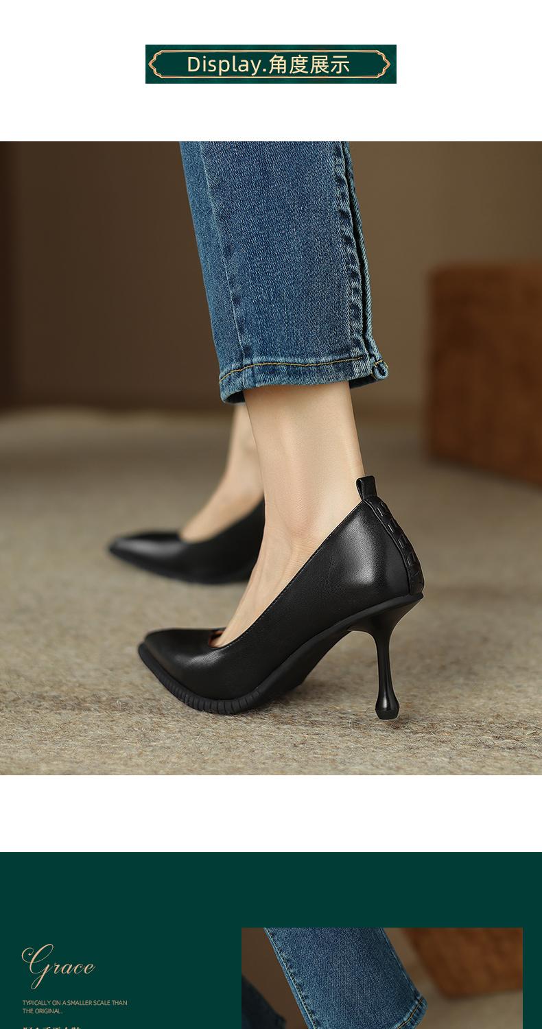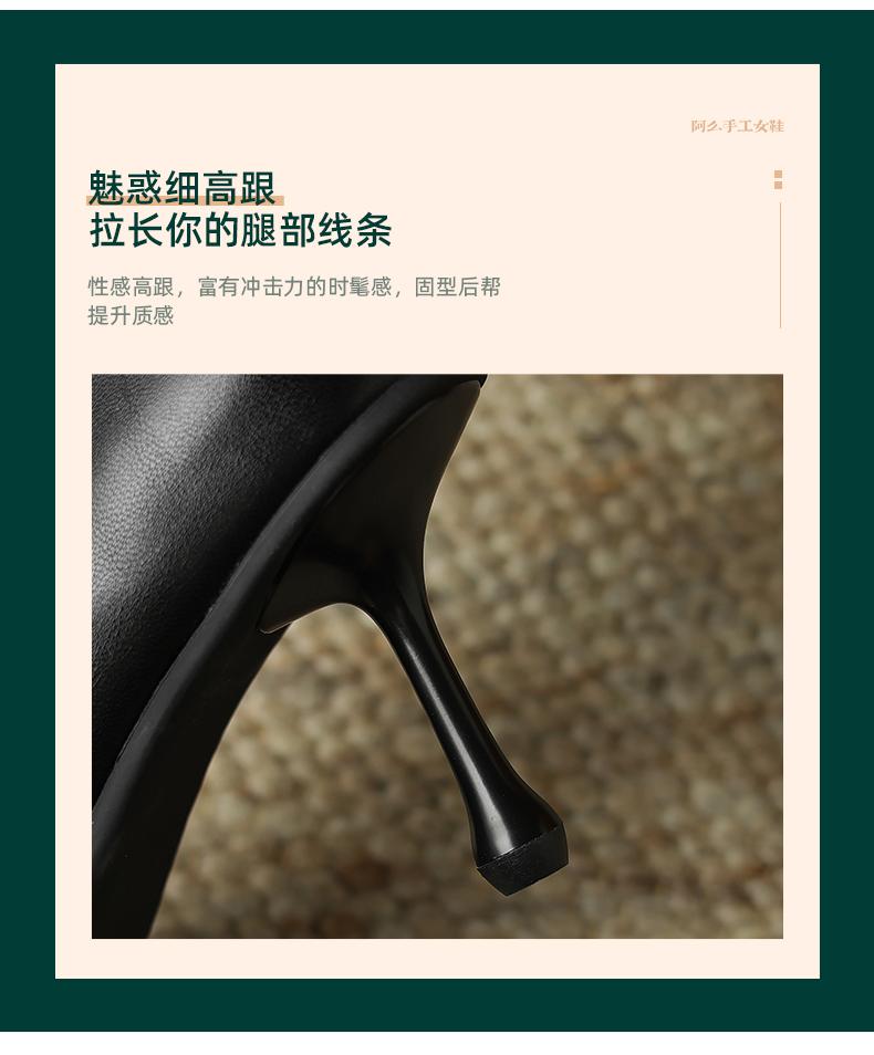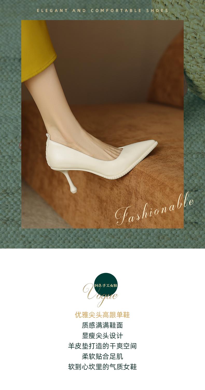 阿么手工女鞋简约百搭职业高跟鞋7.5CM通勤真皮不累脚2025年新款