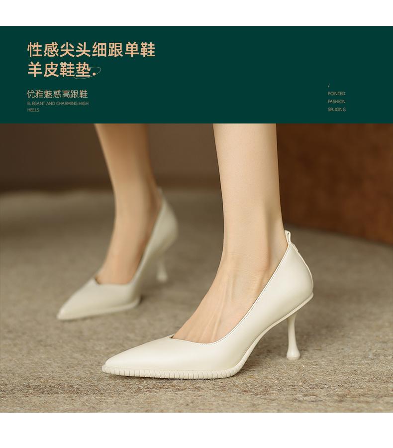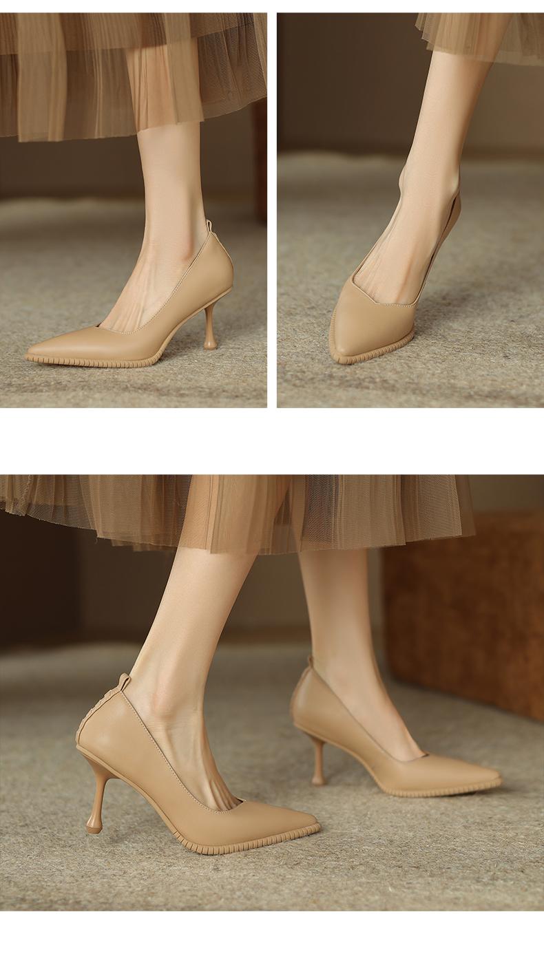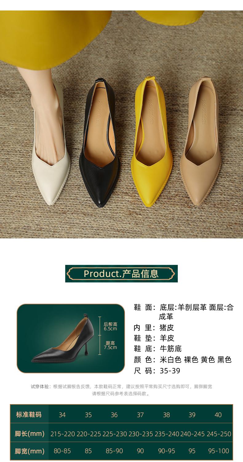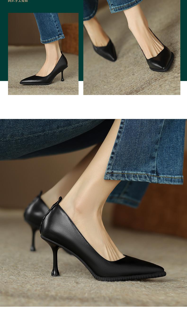阿么手工女鞋简约百搭职业高跟鞋7.5CM通勤真皮不累脚2025年新款