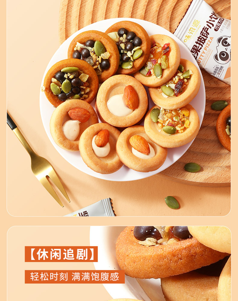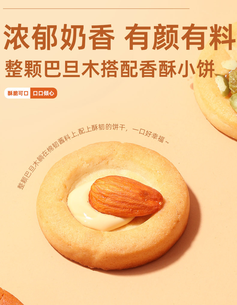 【49.9限时抢72包!坚果披萨小饼干】CP新搭配,用料满满,甄选原料叠加美味bBUFF,爆款巴旦木夹心曲奇下午茶休闲小零食L