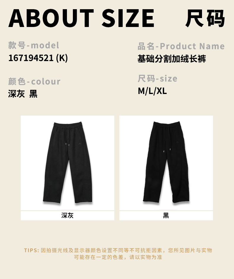 基础分割加绒长裤-纪念日百货门店同款167194521