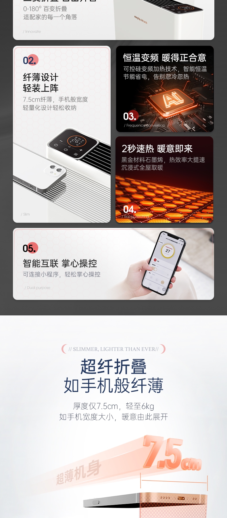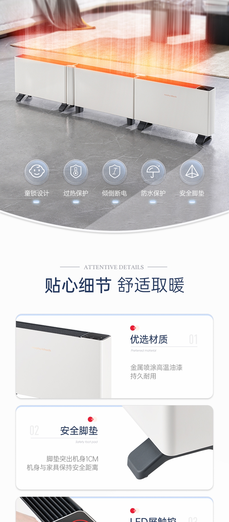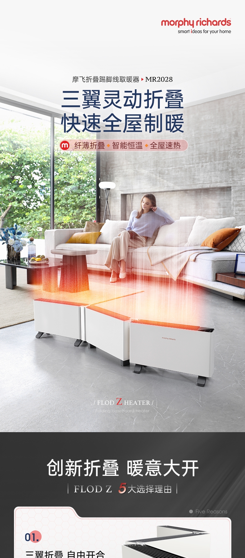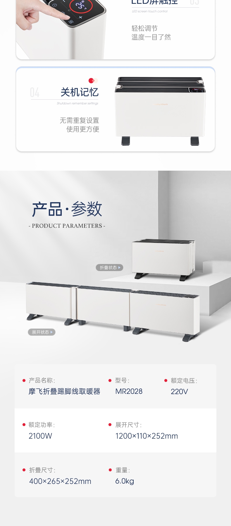 摩飞折叠踢脚线取暖器MR2028