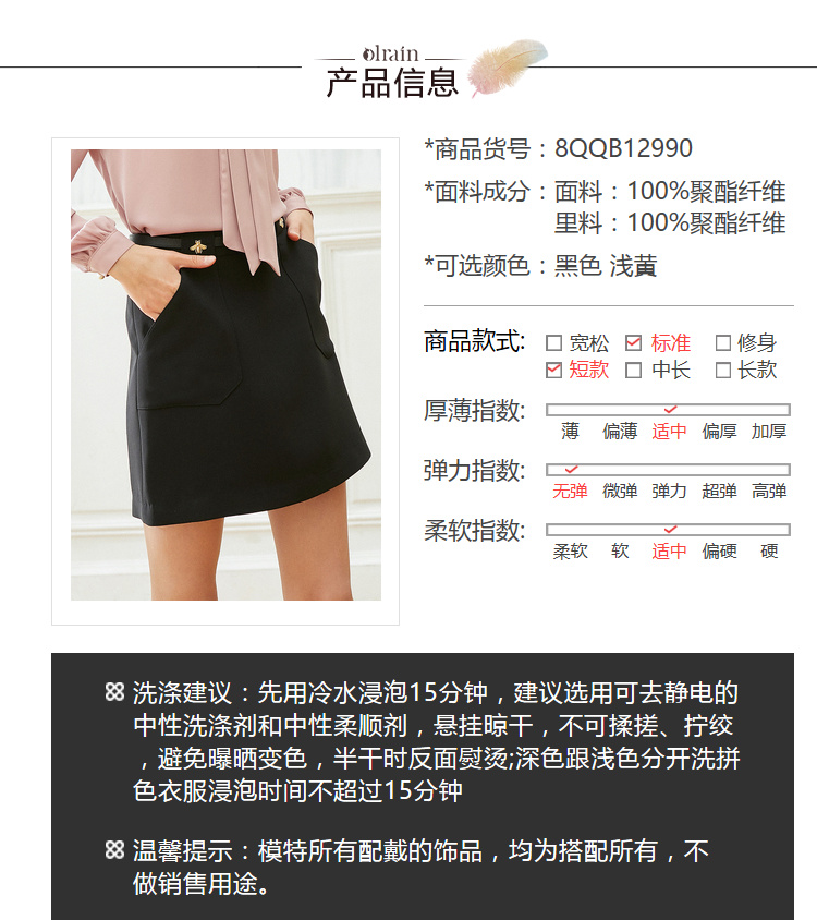 欧芮儿2019秋收腰ol风气质百搭包臀半身裙女一步短裙子潮