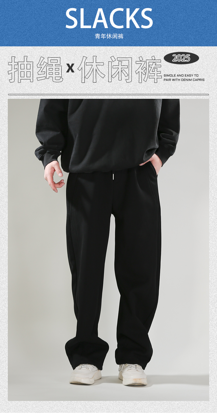 DRONKOO 2025 抽绳前袋前片交叉斜破骨复合绒厚卫裤
