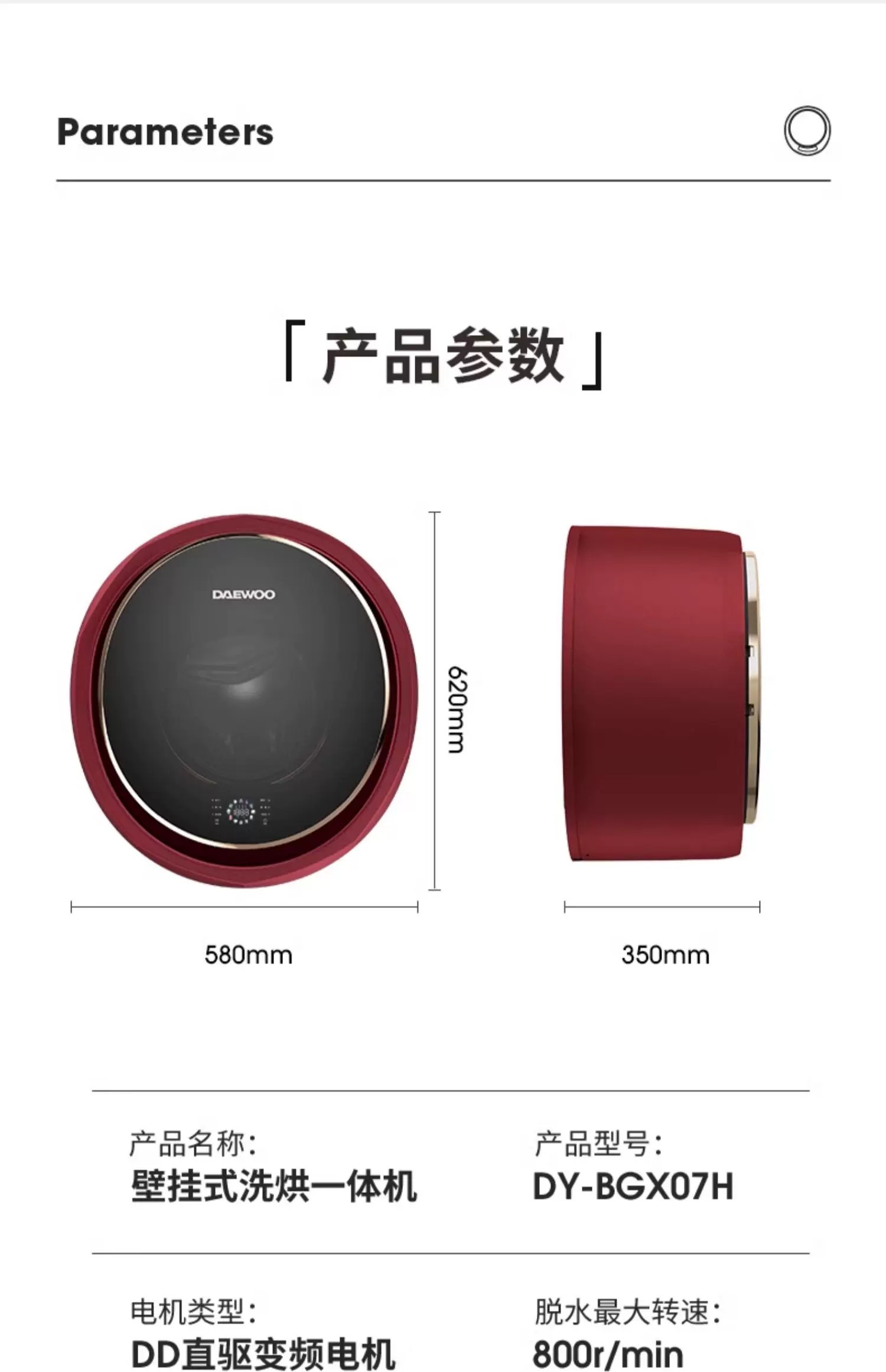 【品牌直供】大宇 app智控挂壁洗烘一体BGX07H