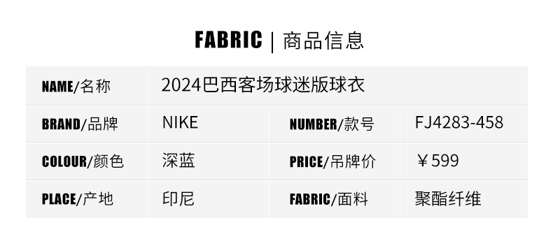 SFS正品 Nike耐克2024美洲杯巴西客场球迷版球衣FJ4283-458