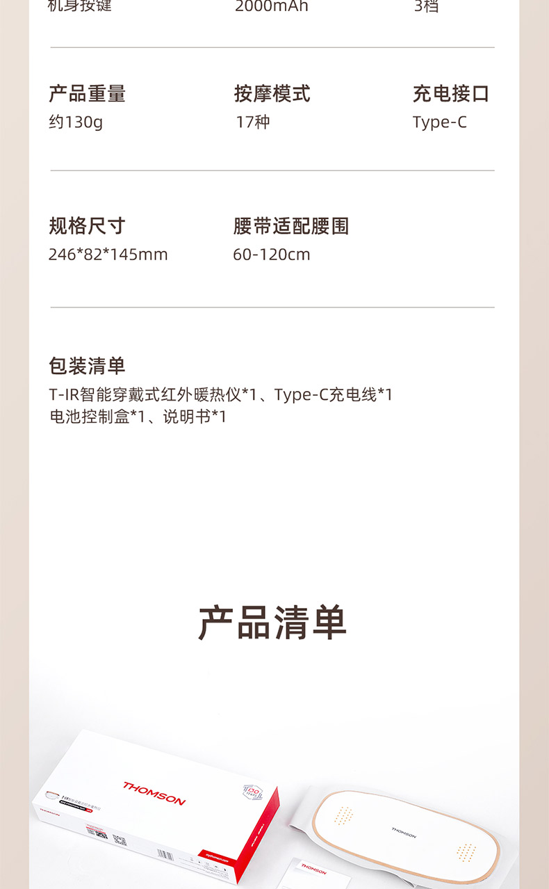 "汤姆逊腰坚强—T-IR 智能穿戴式红外暖热仪E40"
