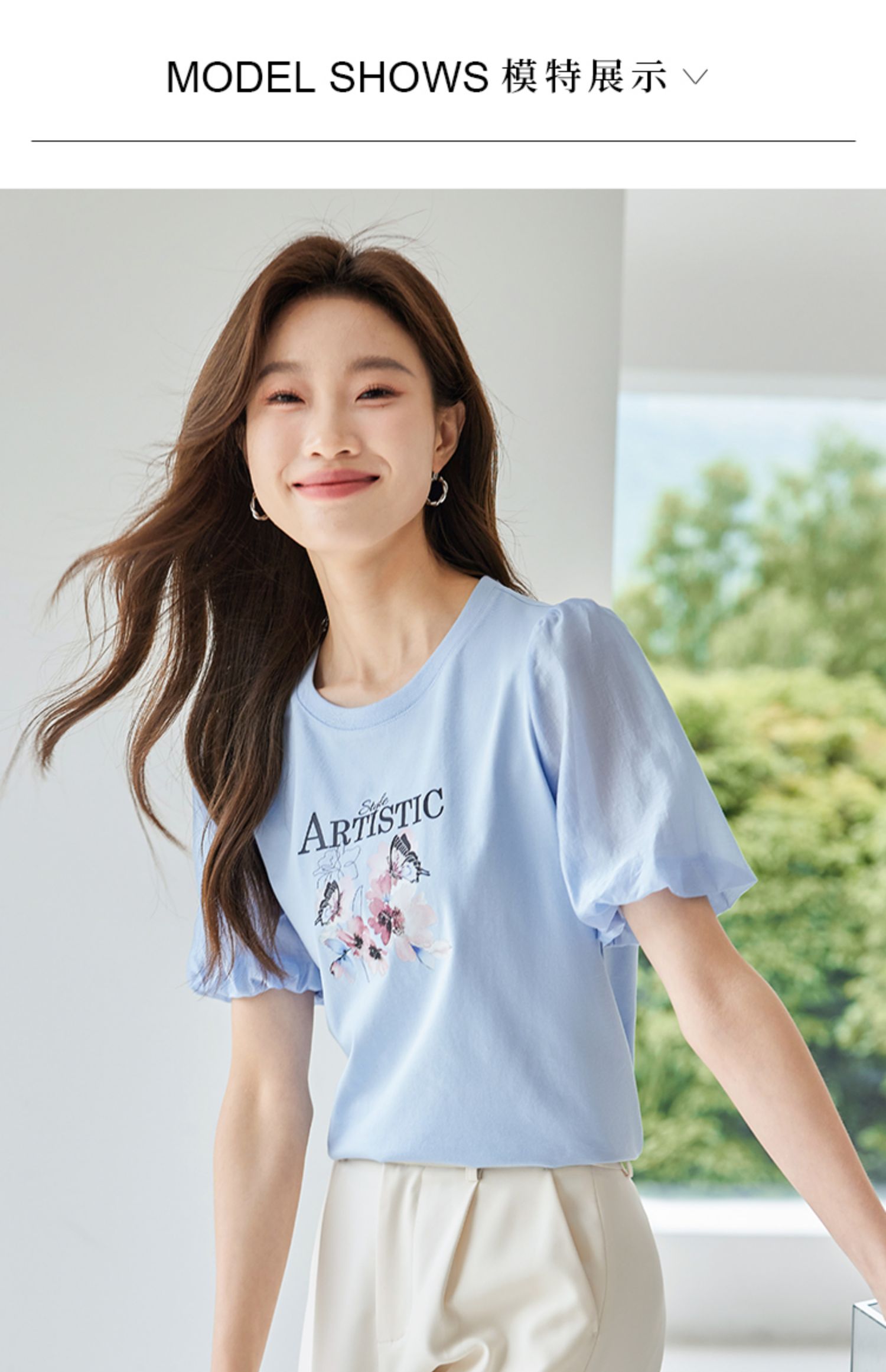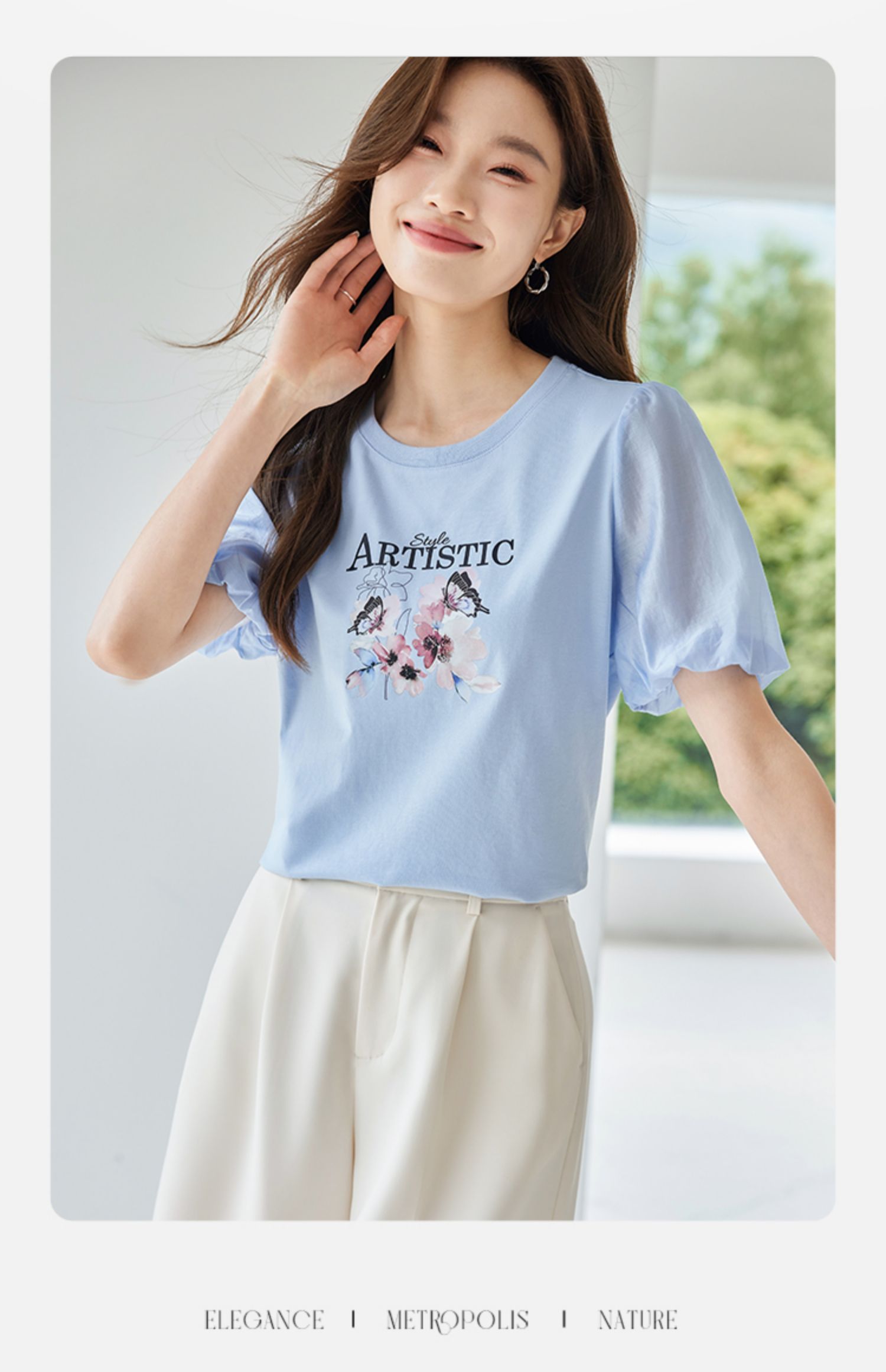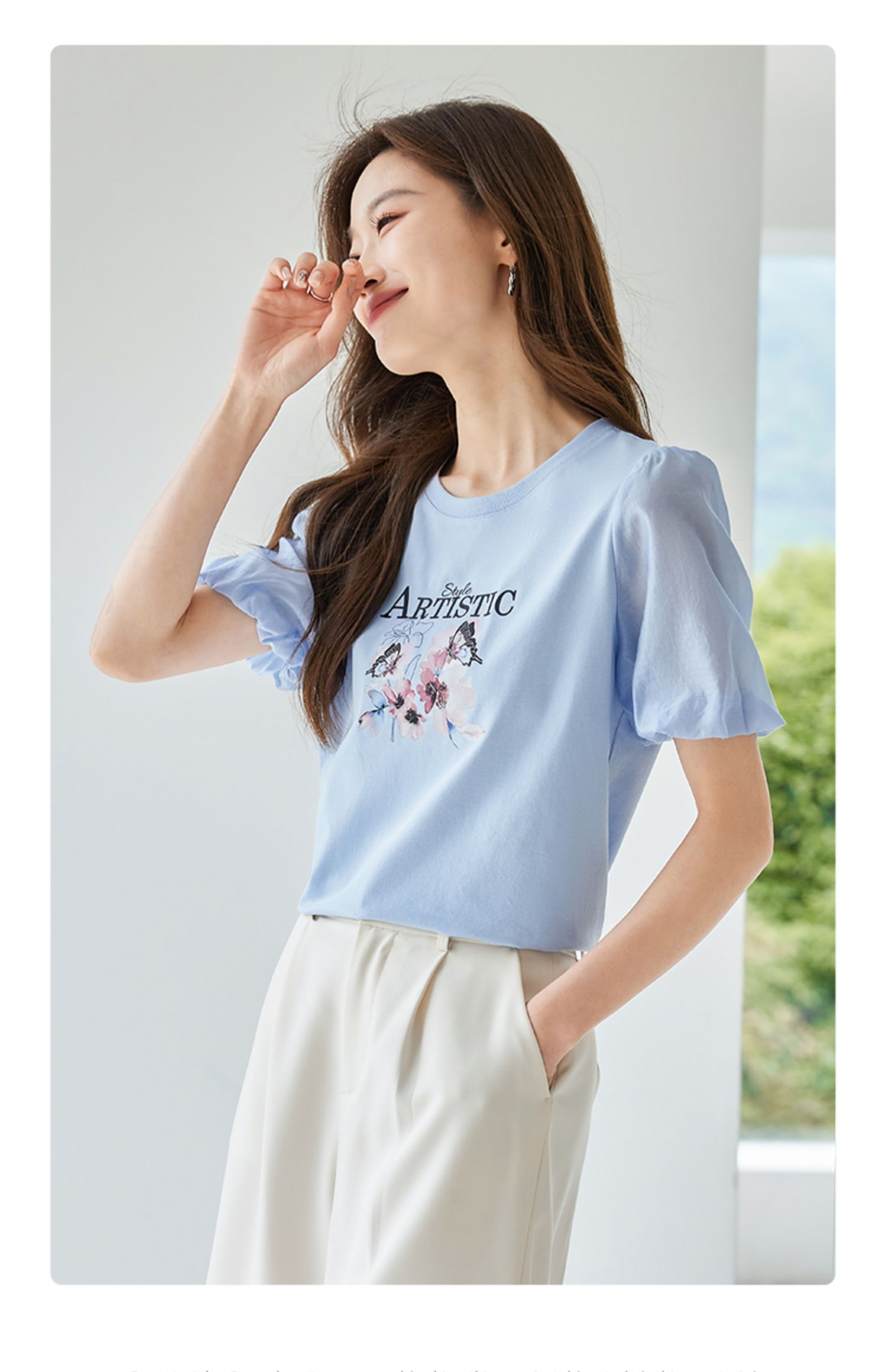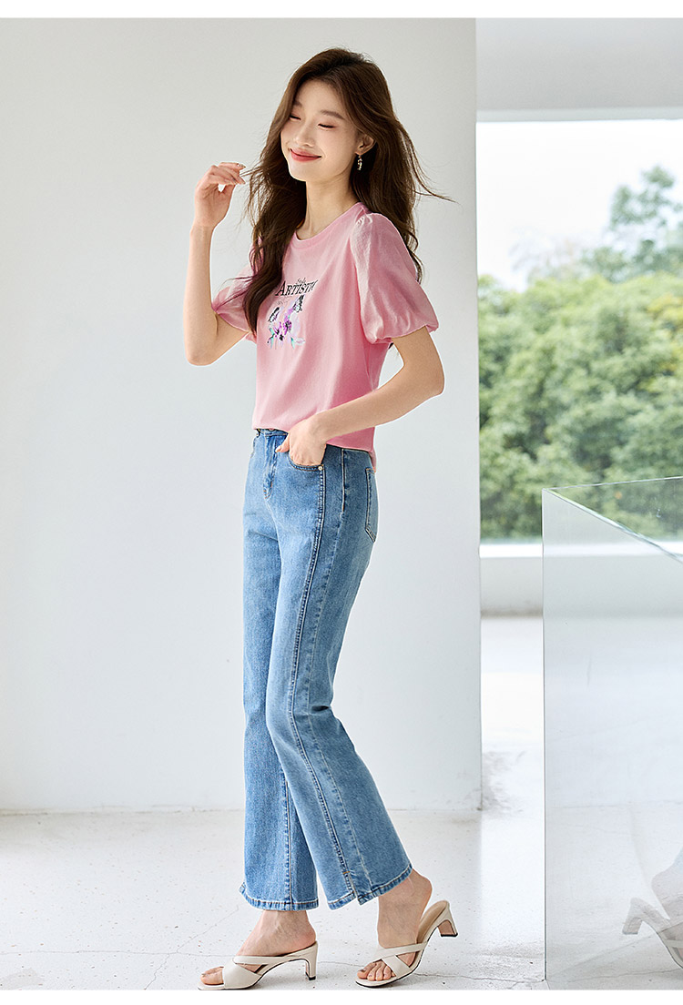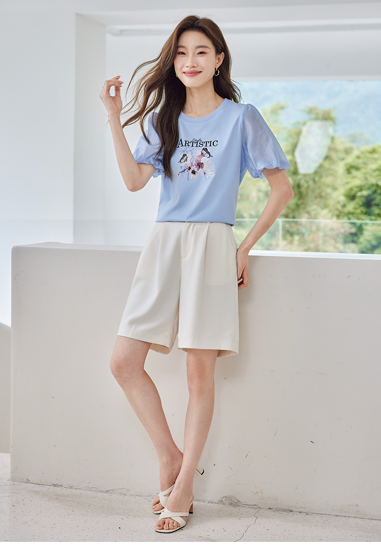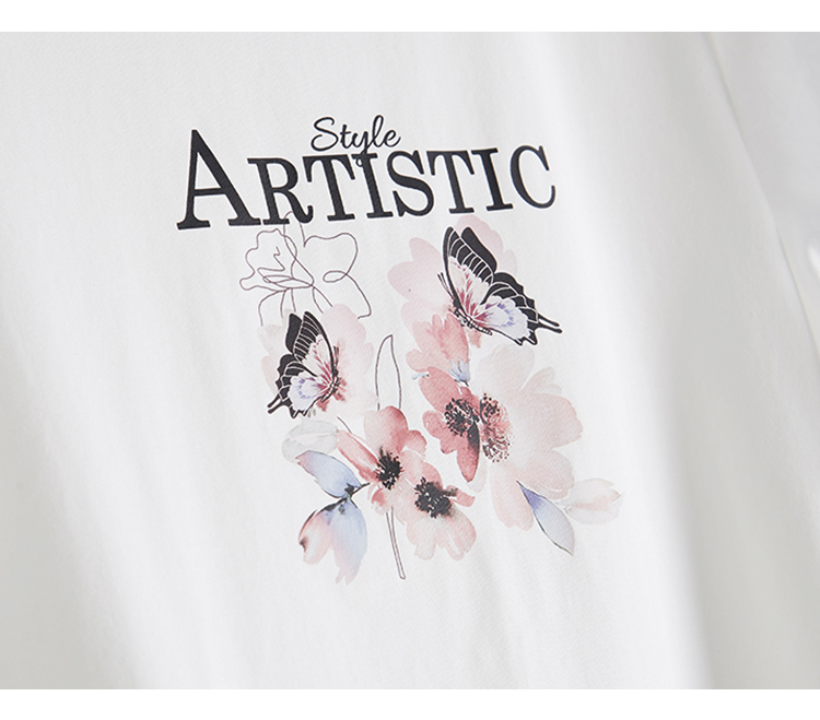 【专属特价】熙世界甜美减龄蝴蝶字母印花T恤宽松泡泡袖别致上衣2025夏新款