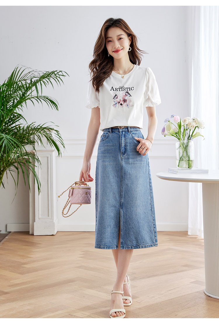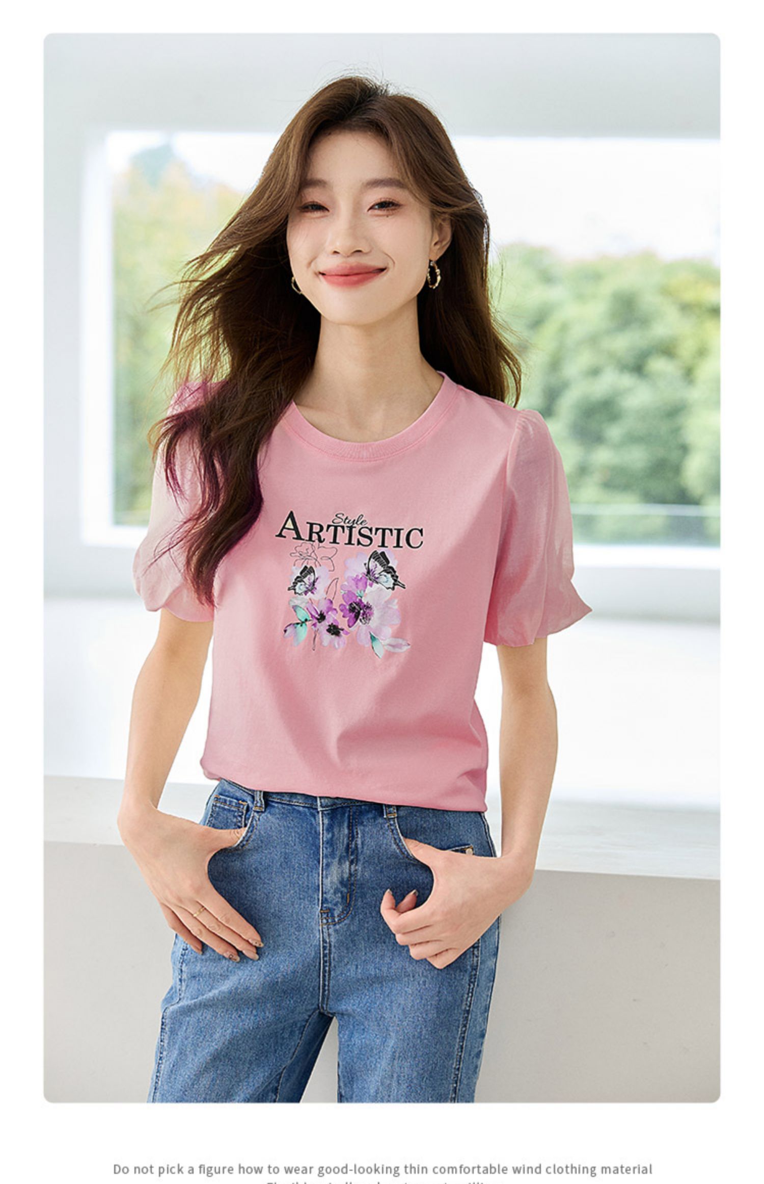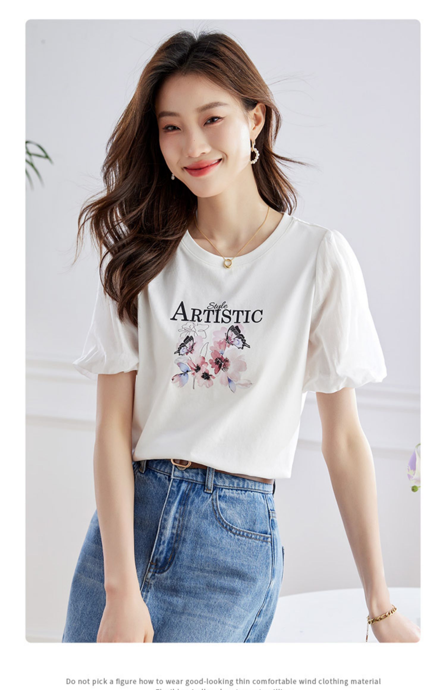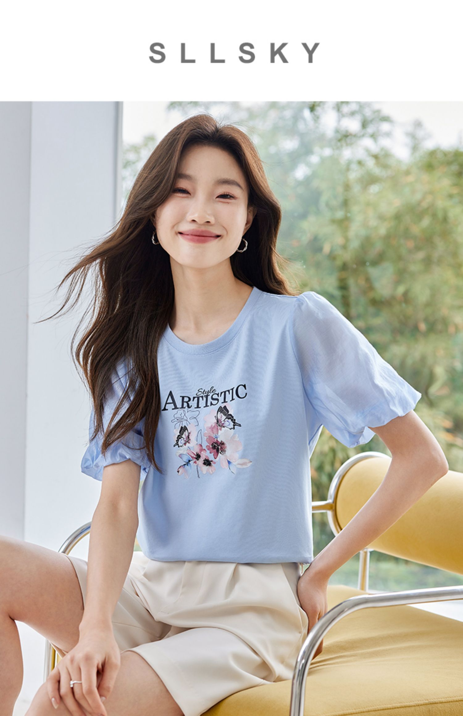 【专属特价】熙世界甜美减龄蝴蝶字母印花T恤宽松泡泡袖别致上衣2025夏新款