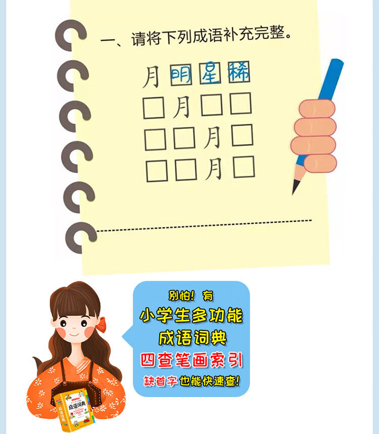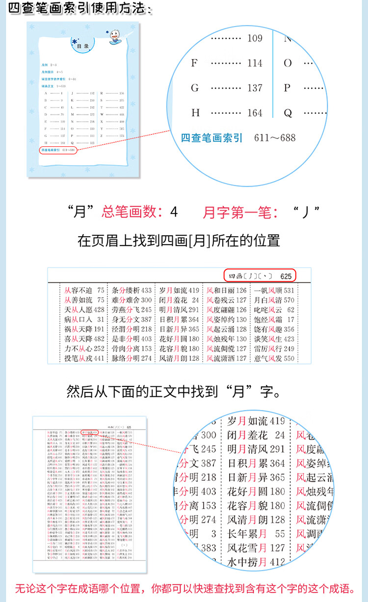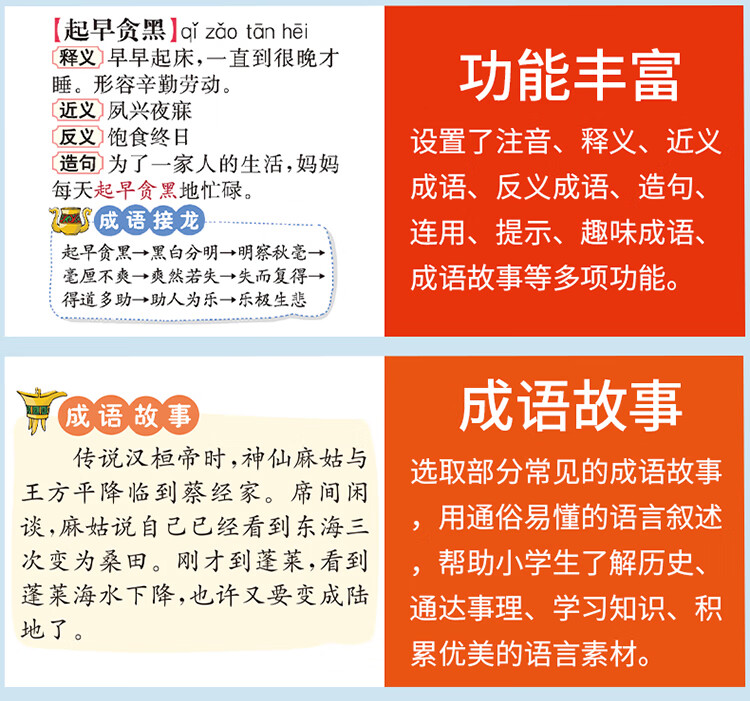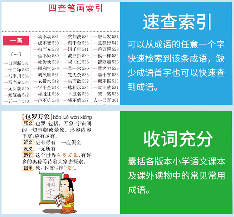 本词典紧扣《语文课程标准》,提供小学阶段需要掌握的成语及相关知识,收录现行各版本小学语文教材中出现的常见常用成语。