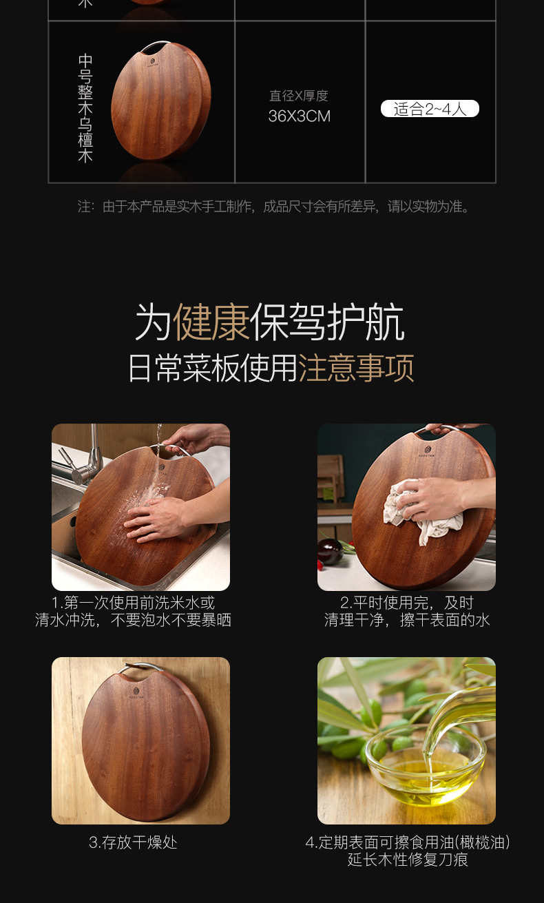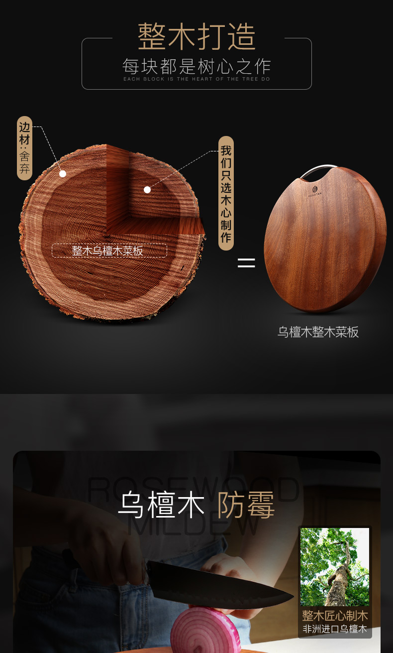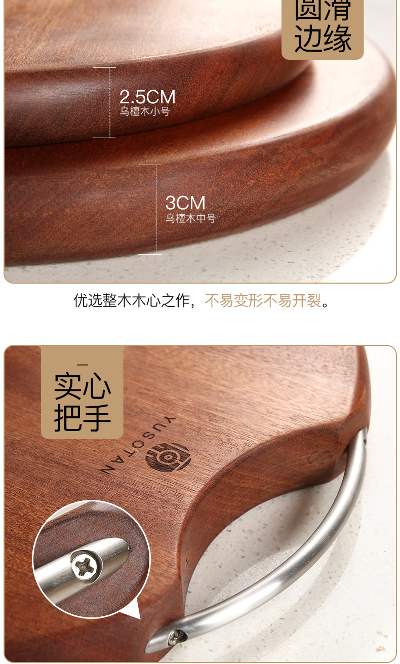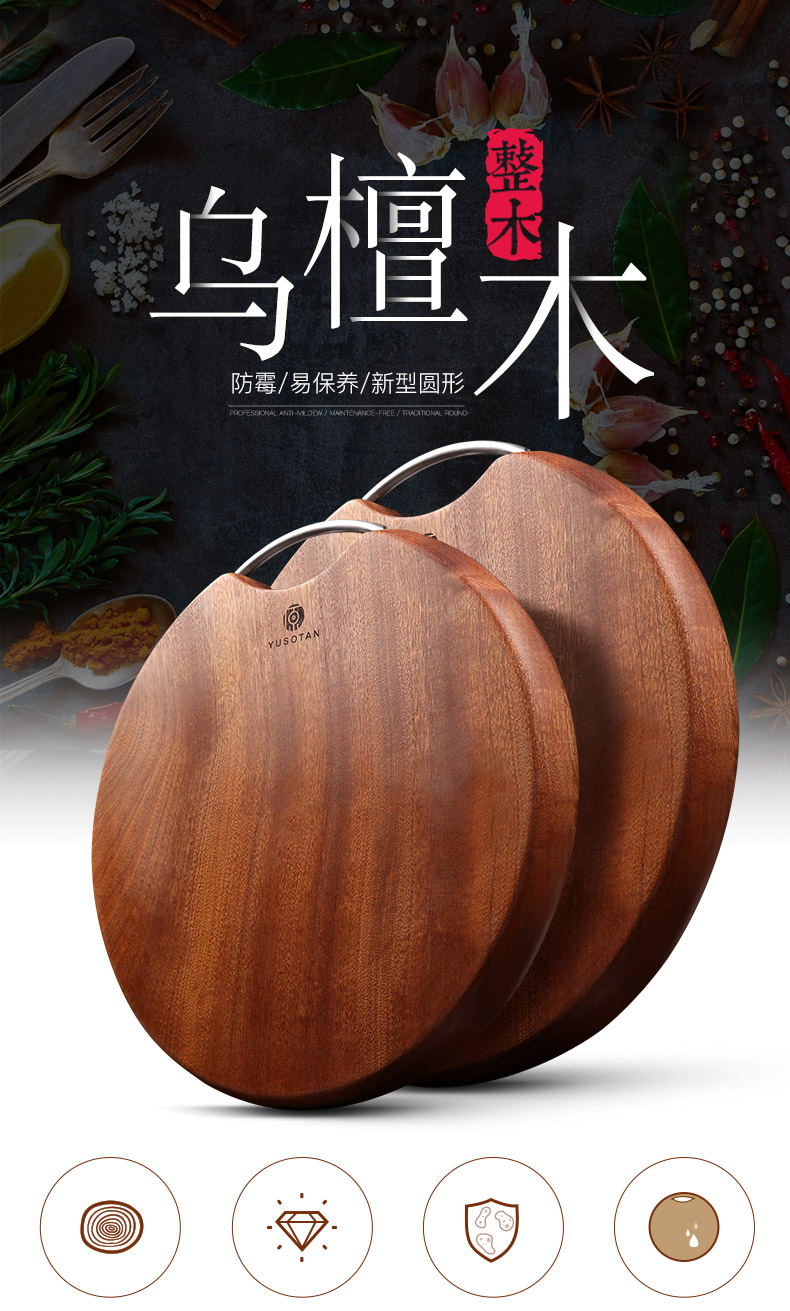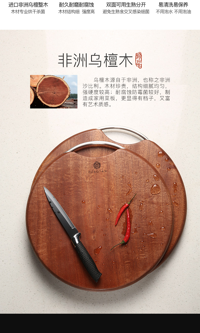 原森太非洲乌檀木圆形整木菜板中号YSTCB0066