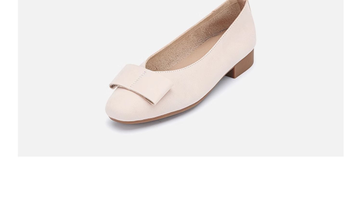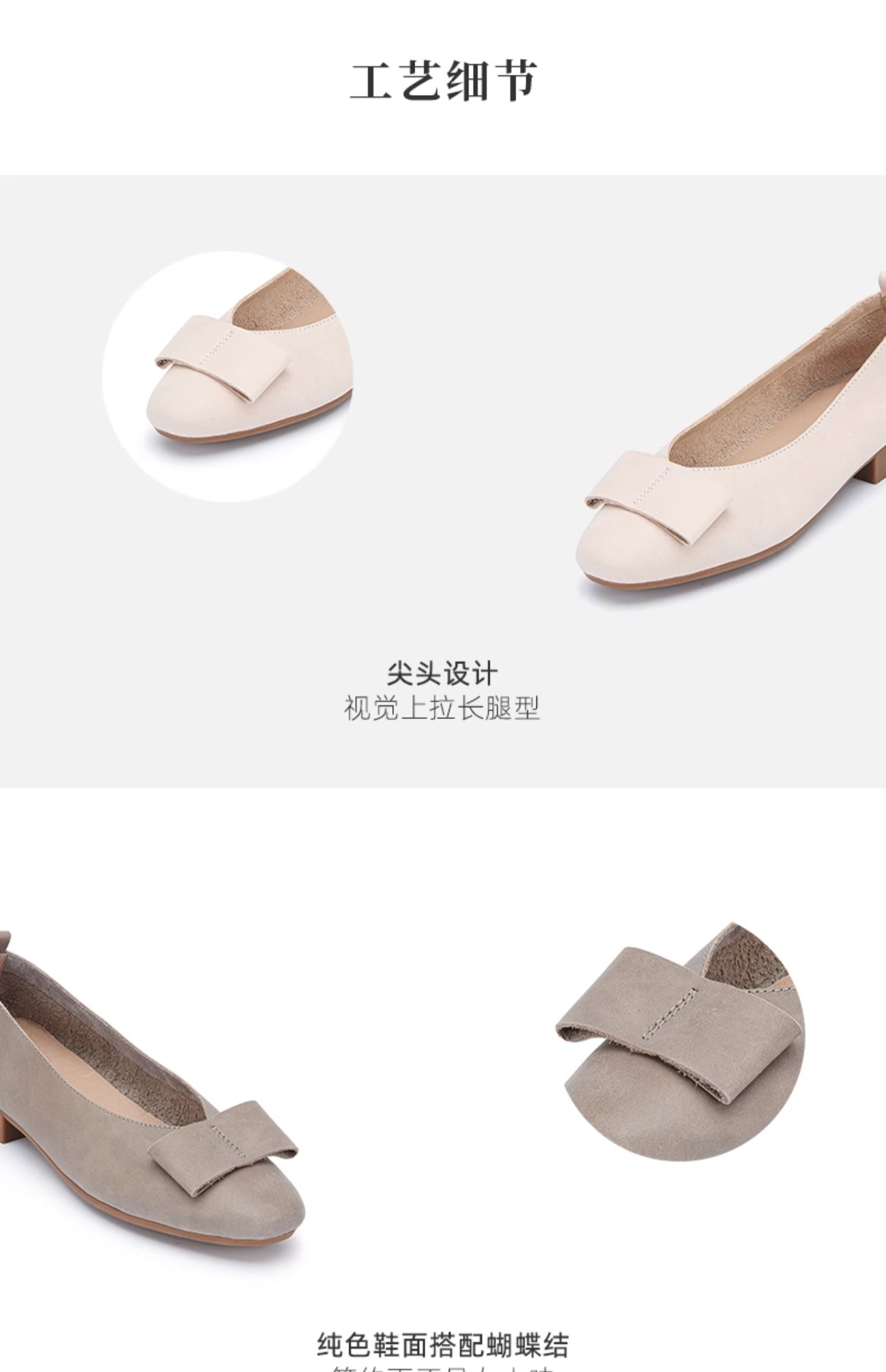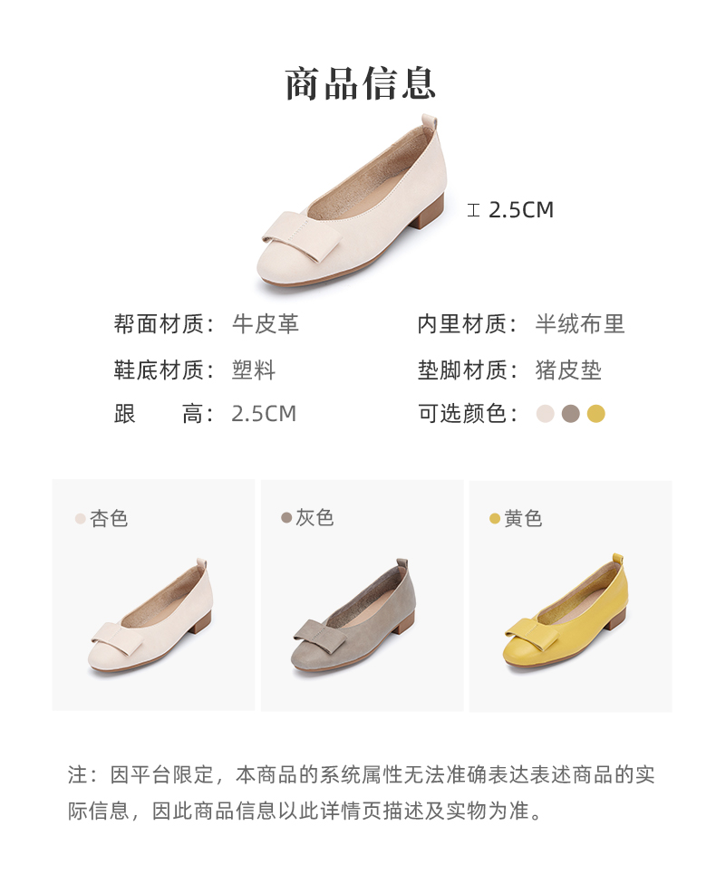 西村名物2024春季新款平底舒适浅口蝴蝶结真皮单鞋粗跟皮鞋X24AE10401