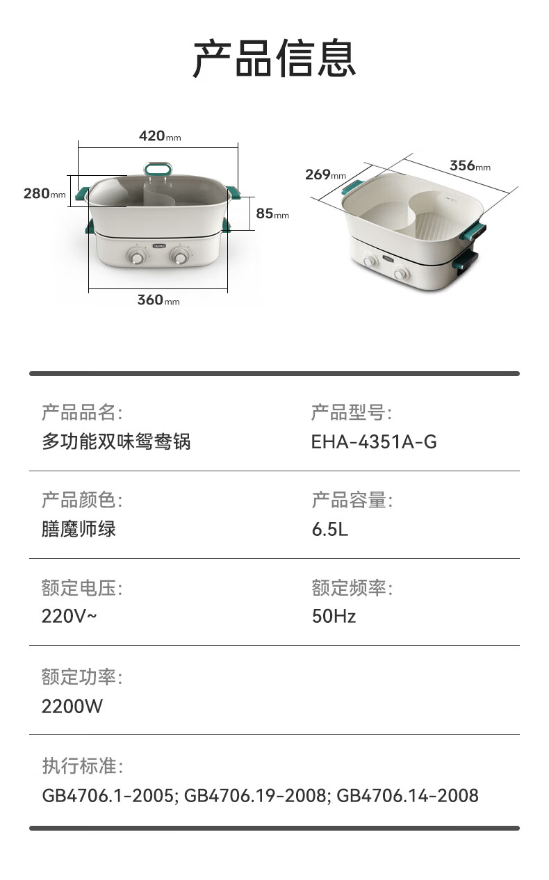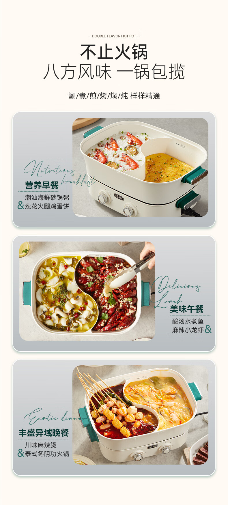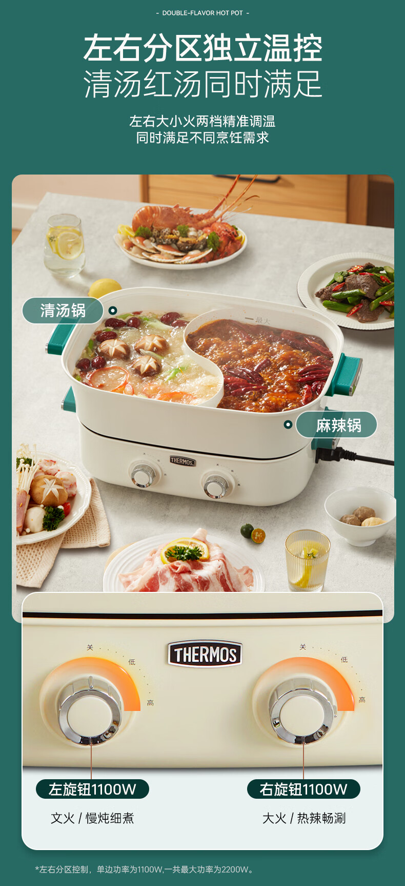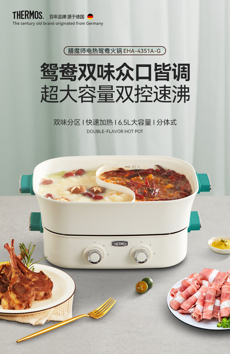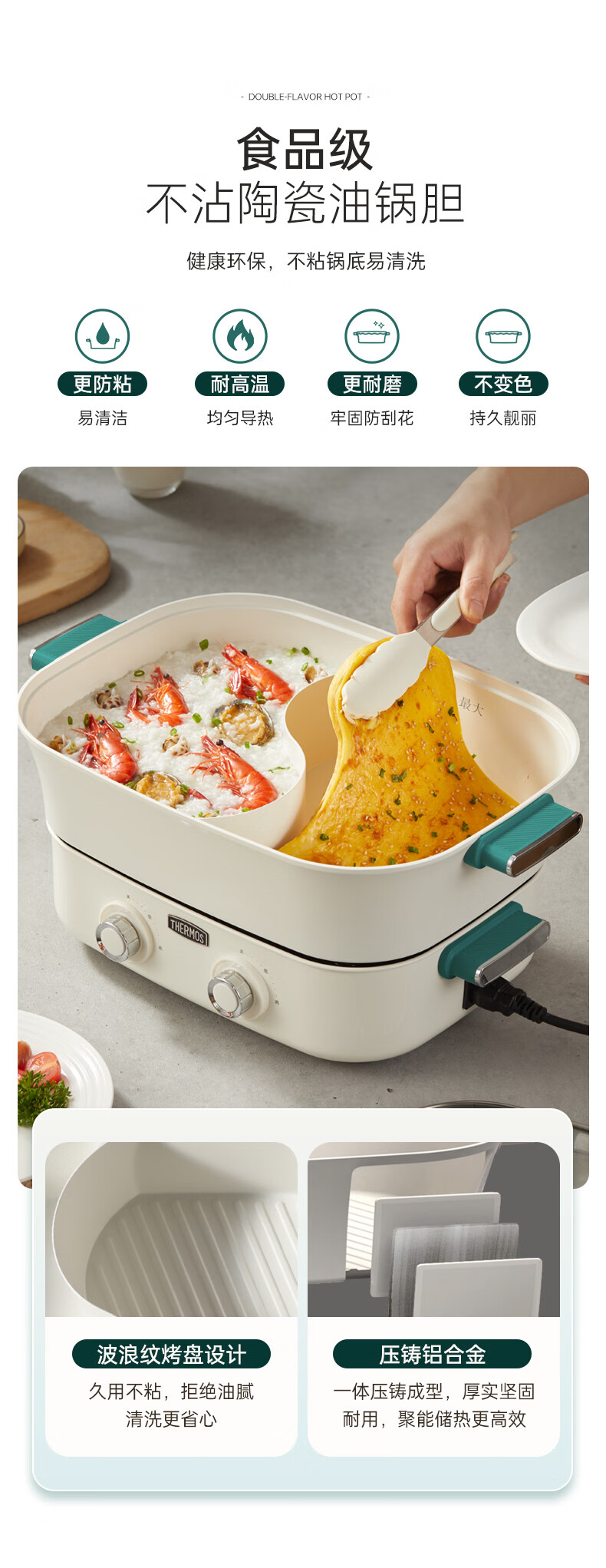 【分仓直发包邮】膳魔师(THERMOS)多功能分体鸳鸯锅EHA-4351A-G