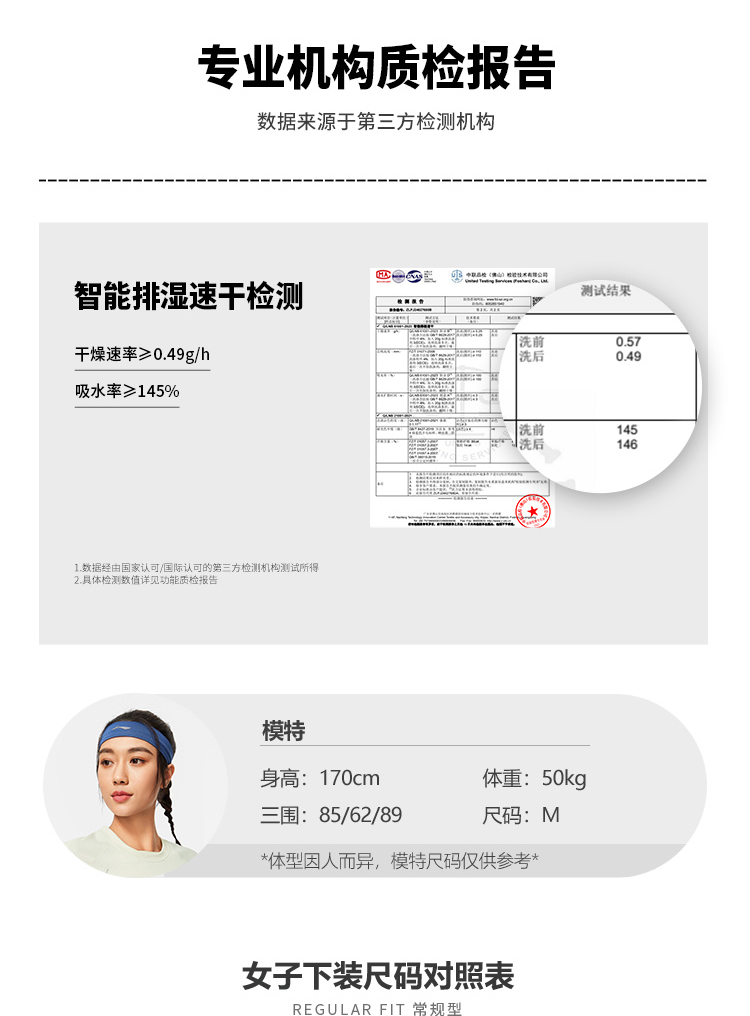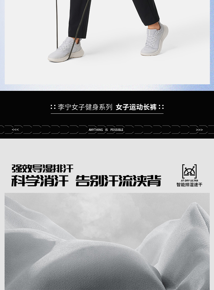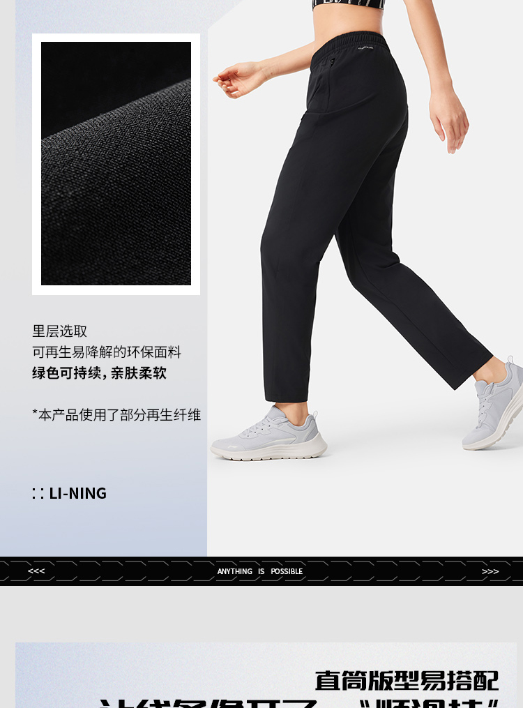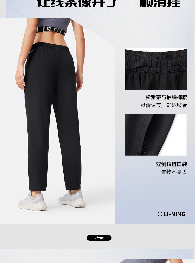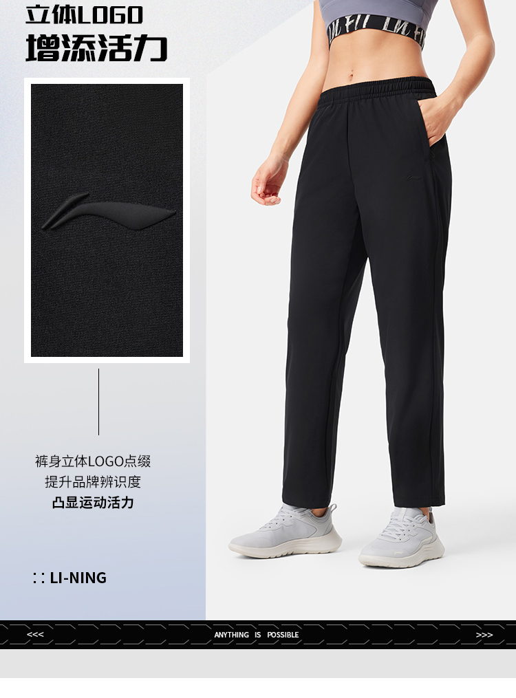 李宁女子直筒排湿速干运动长裤AYKV096-1