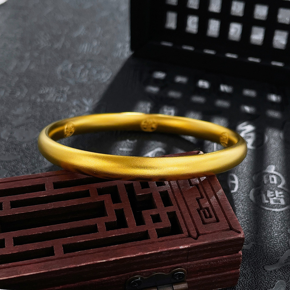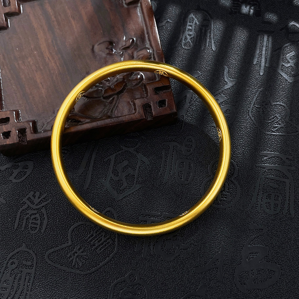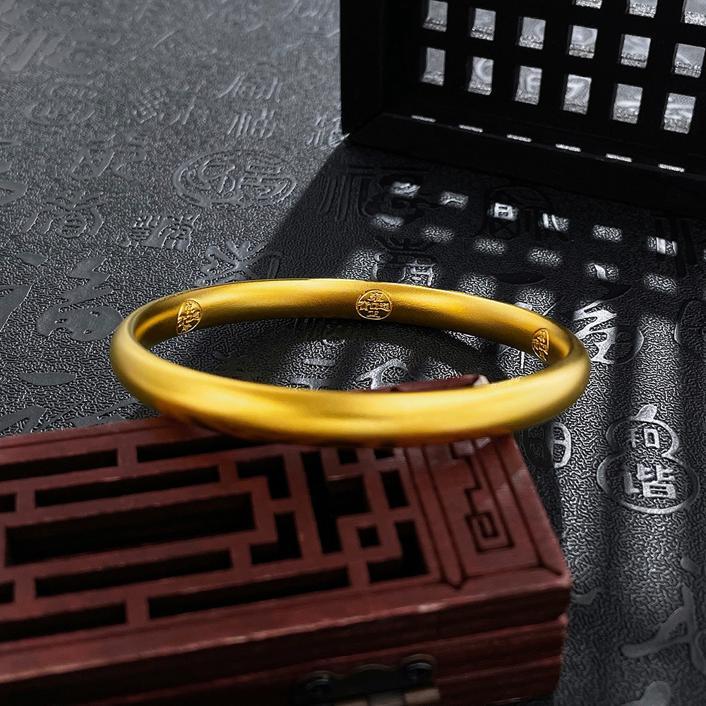 【限时克减150元】足金999.9 #招财纳福 古法空心固口泥鳅背外素圈光圈内招财进宝铜钱图案手镯(面宽约6.6-7mm,厚约4mm)(GFSZW00190-01)