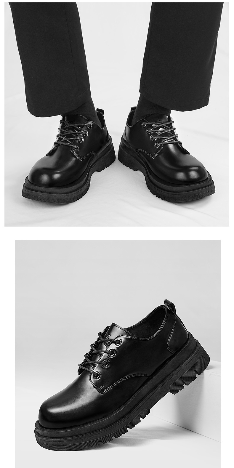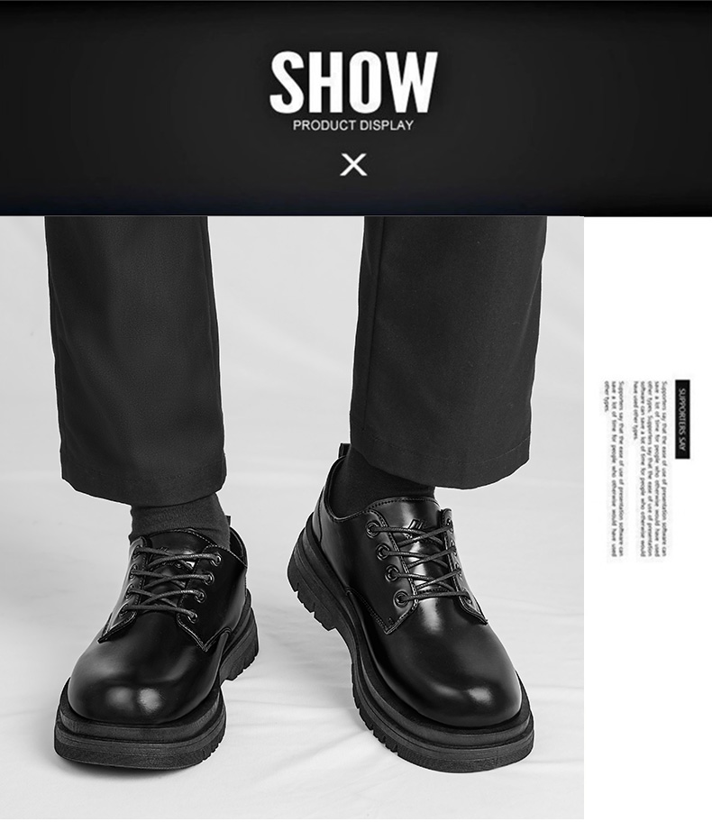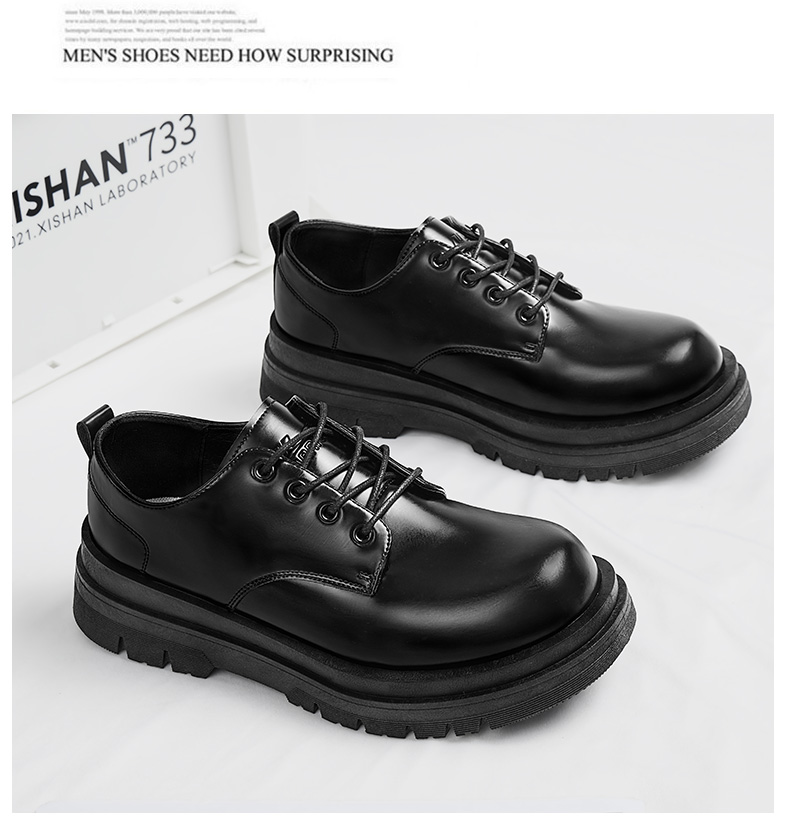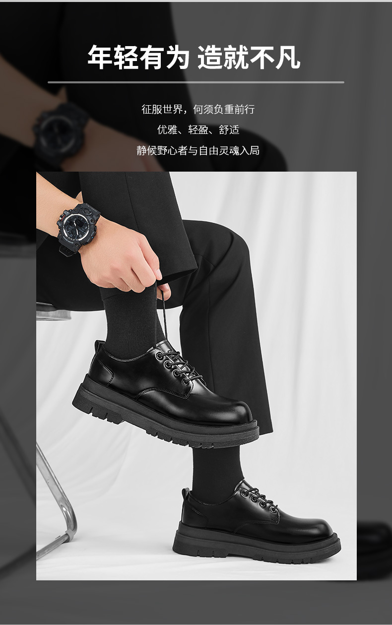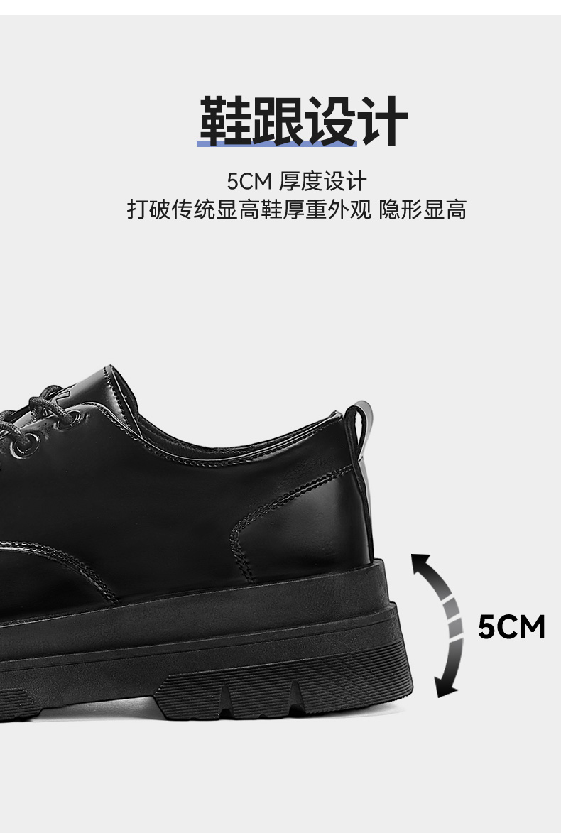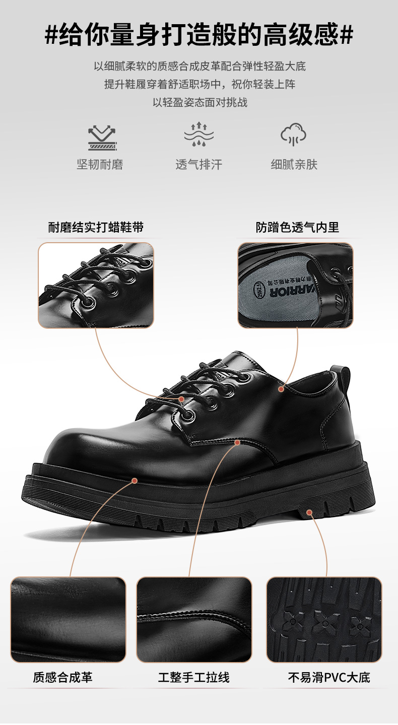 回力皮鞋男款正装商务休闲上班通勤结婚增高黑色大圆头厚底德比鞋