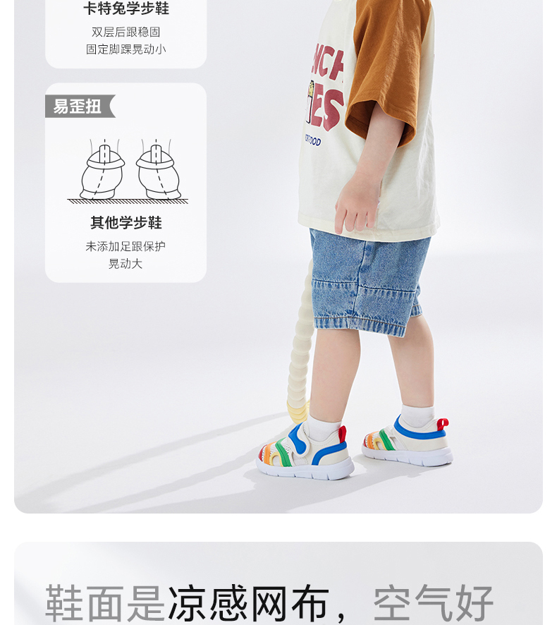 卡特兔儿童男童2024夏季防滑毛毛虫学步机能鞋宝宝童鞋凉鞋