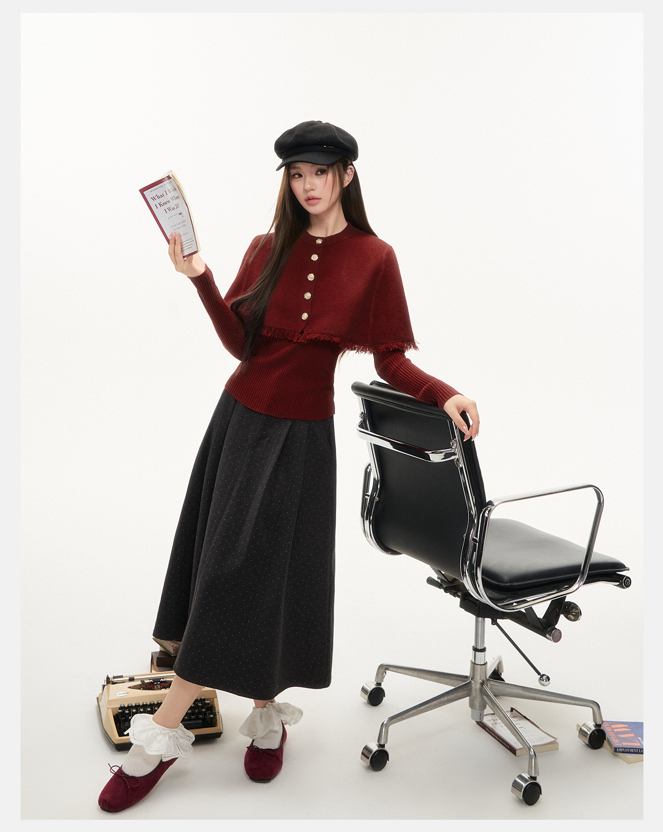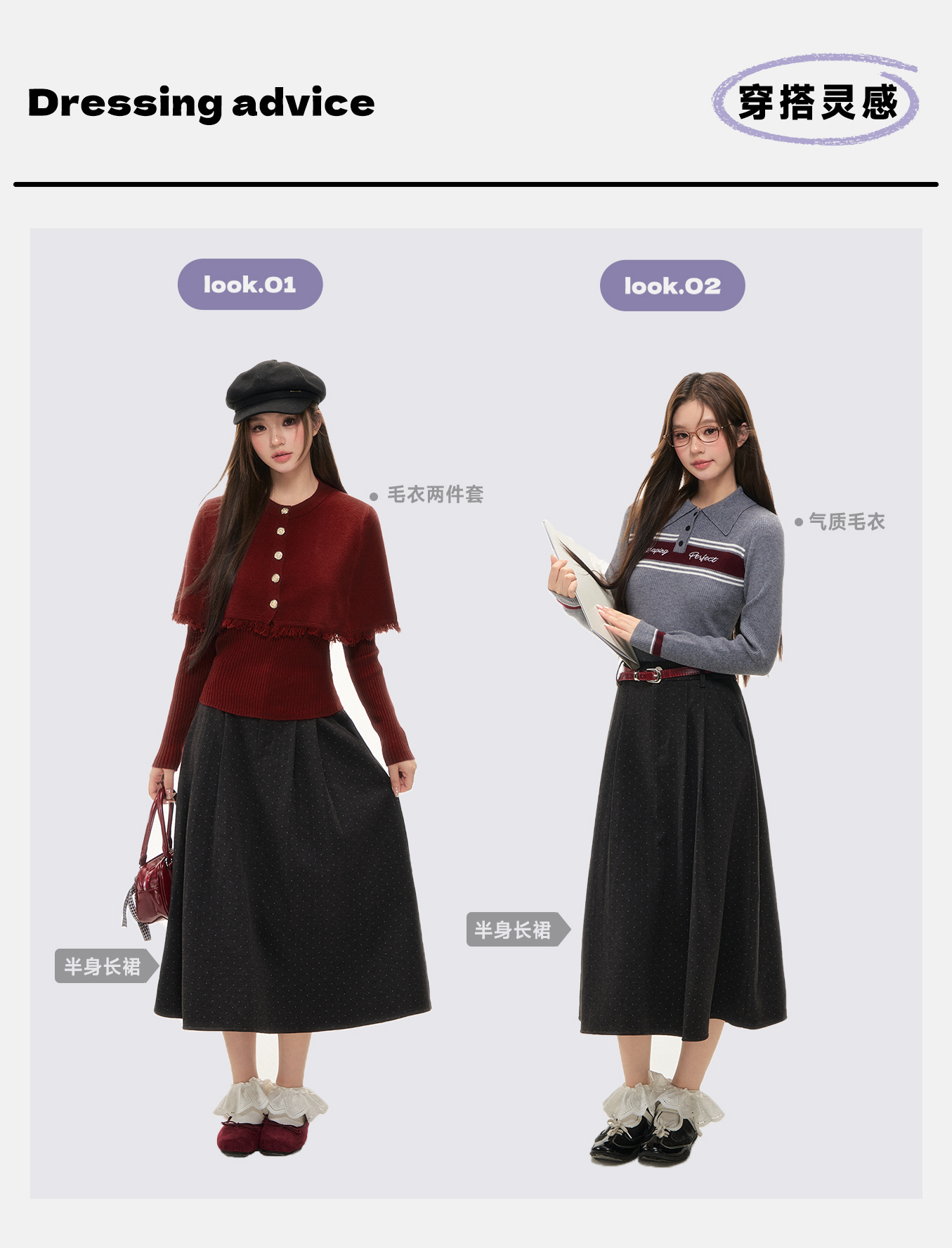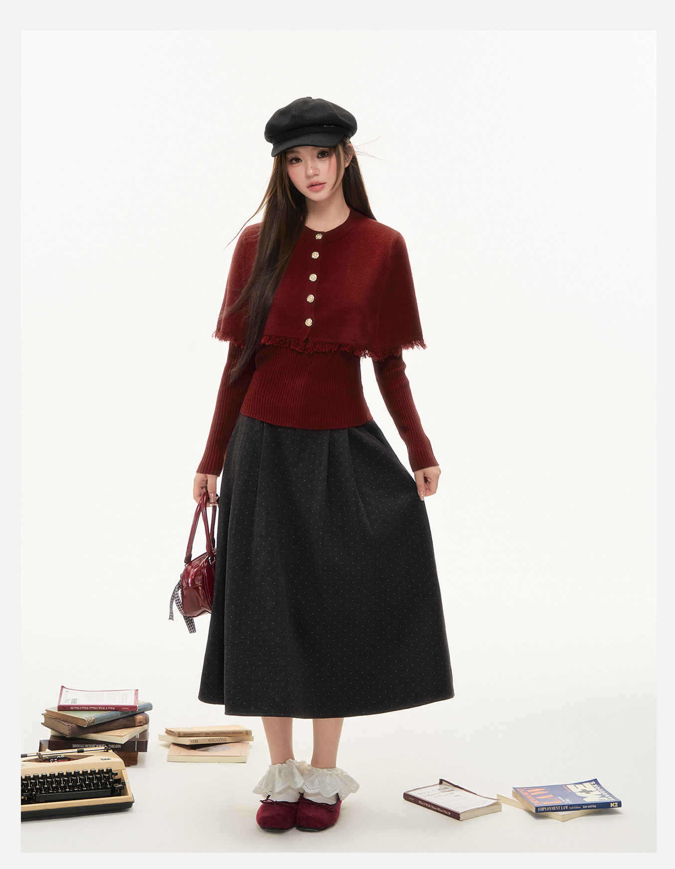 P&X设计师女装2025冬季斗篷毛针织衫两件套上衣825415096 红色