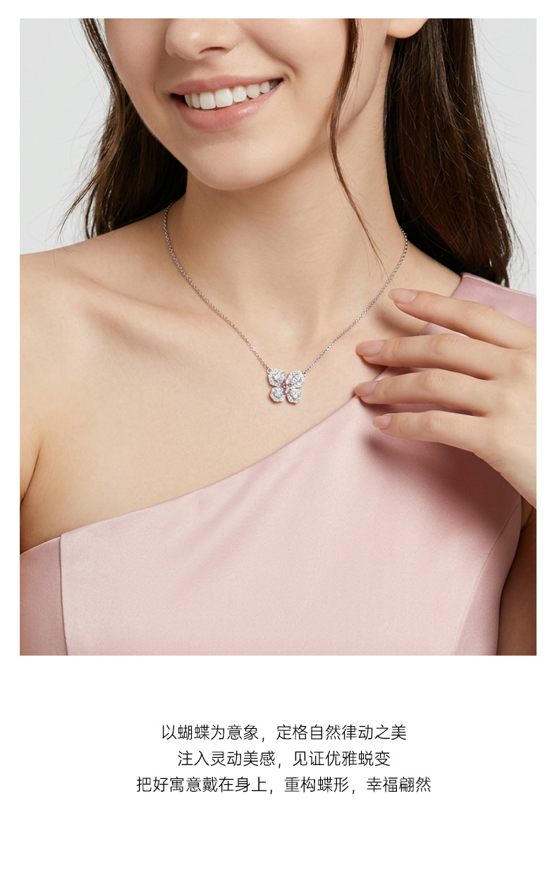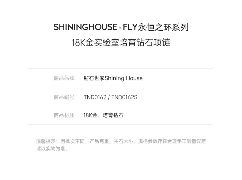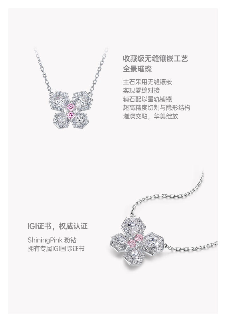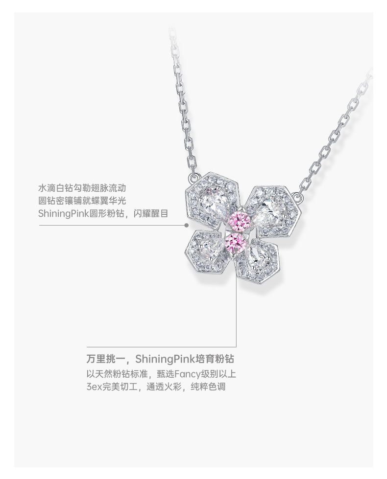 FLY·永恒之环系列 ShiningHouse[培育] 18k金钻石项链 粉钻人工真钻人造钻石K金项链可调节时尚钻石项链【此商品不支持7天无理由退货退款】预计3日发货