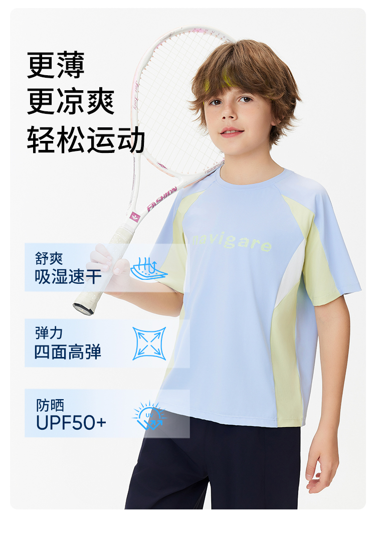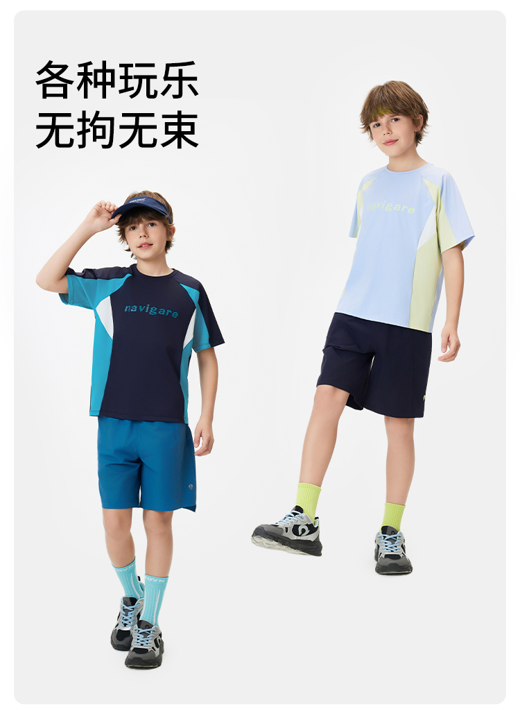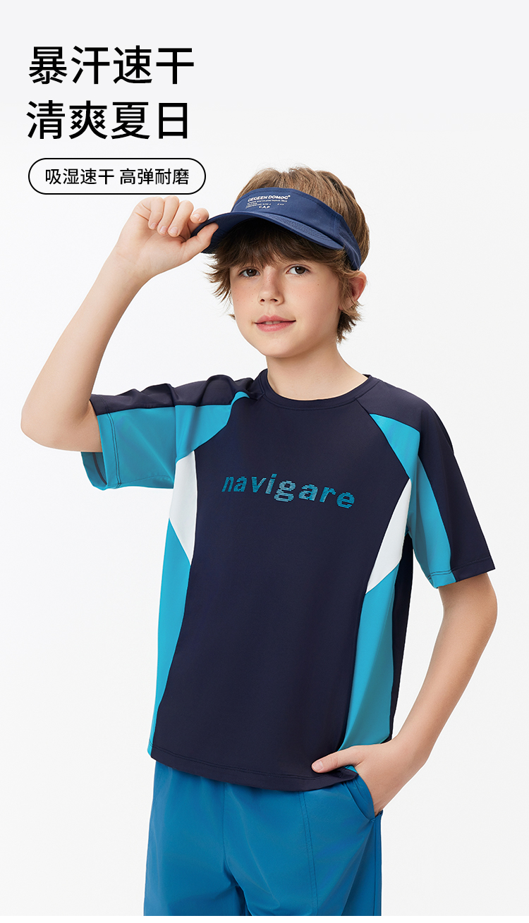 【纳维凯尔】【防晒速干】【120-165】Navigare意大利小帆船男童夏款防晒速干短袖T恤