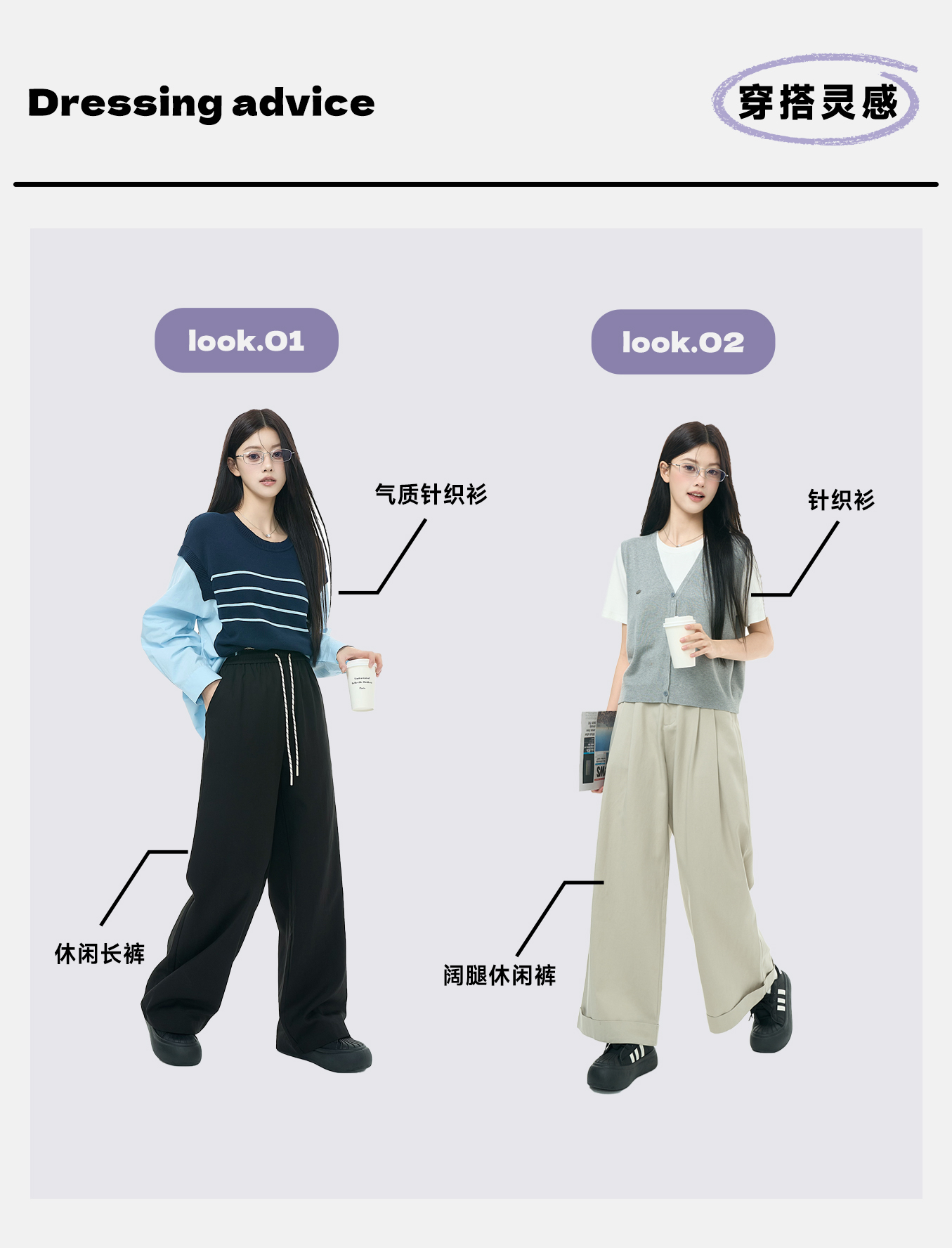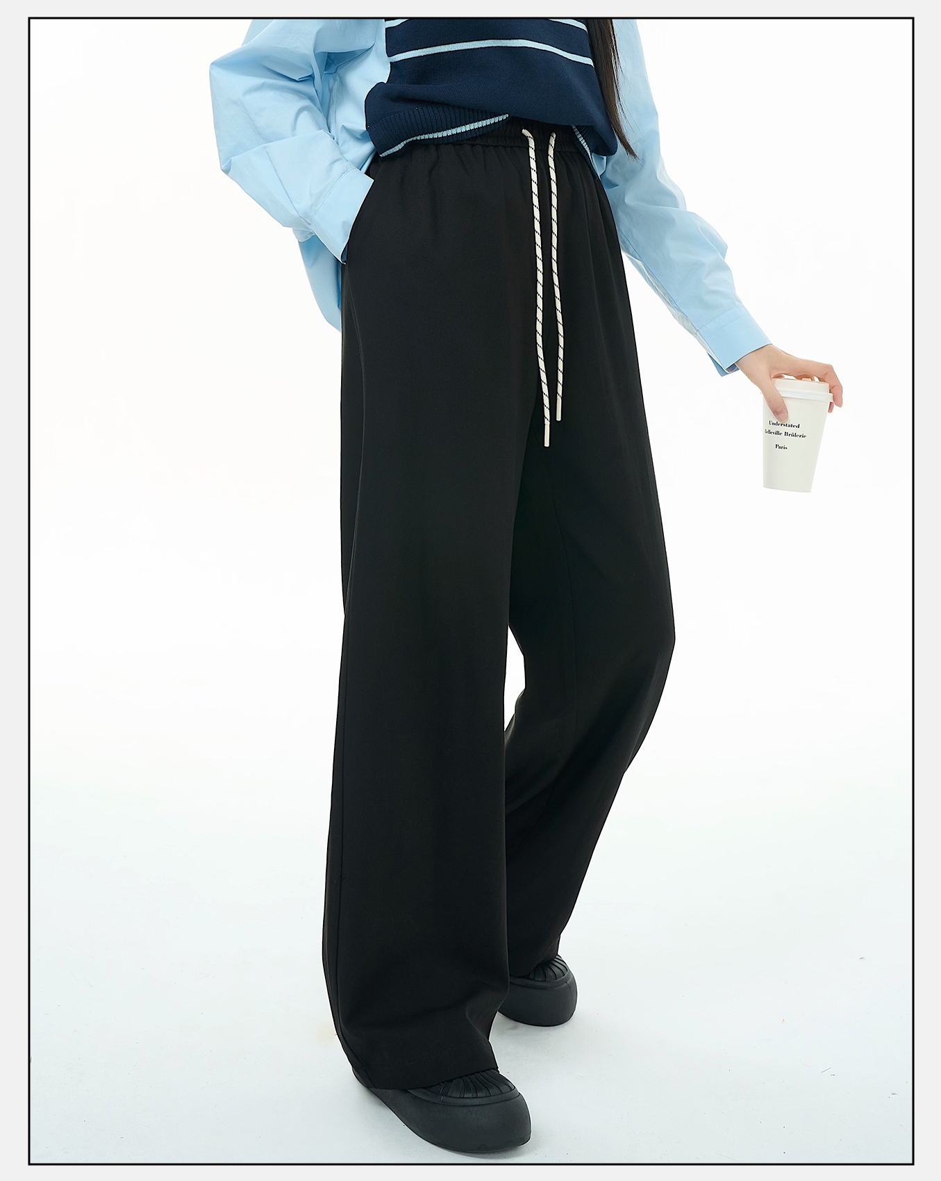 P&X设计师女装2025秋季抽绳裤阔腿裤长裤休闲裤825309179 黑色