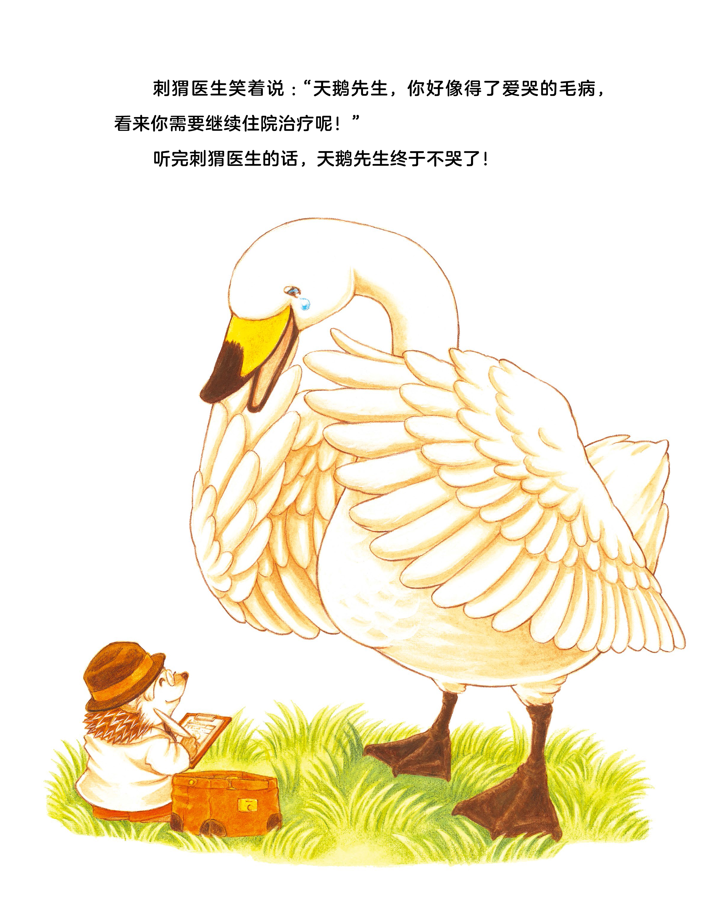 森林深处有一间医院,那是刺猬医生的诊所。这一天,刺猬医生接待了第一次走进医院的小熊,给发烧的狼打针,还把兔子小姐的熊猫玩偶也缝上了。刺猬医生医术高超,只是为什么负责接待患者的天鹅先生的伤总不见好转呢?刺猬医生正纳闷着,突然接到去狸猫先生家出诊的消息……
